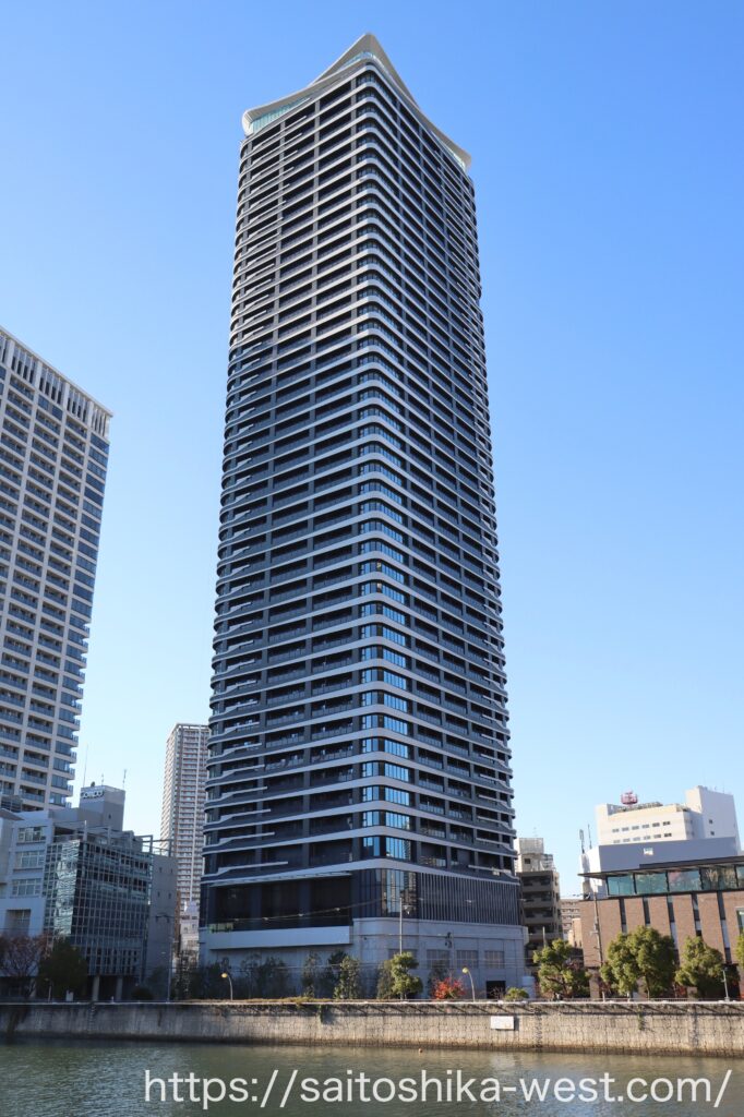 北東側から見た様子です。シエリアタワー中之島は、高さが約168mもあるので実数値以上に高く感じました。