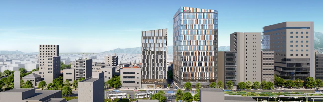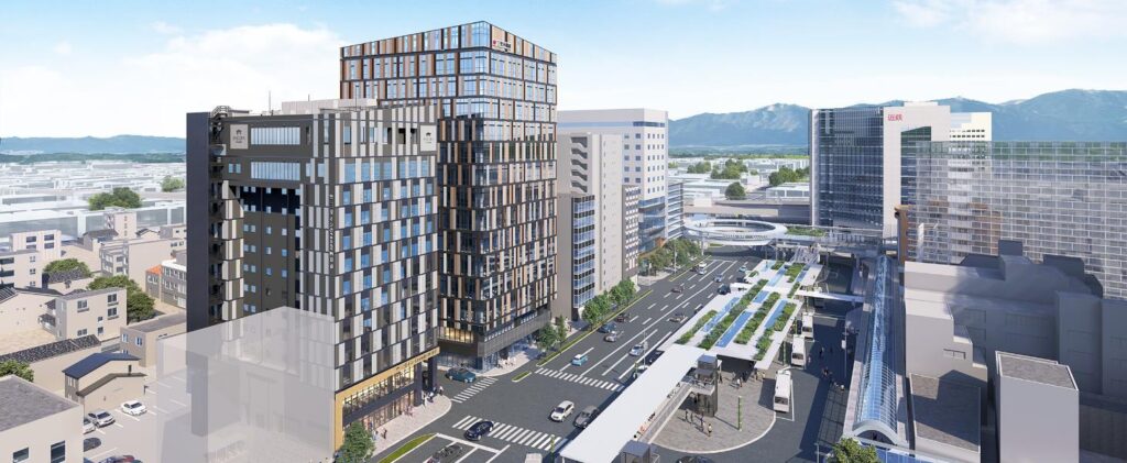 これに対し、ANNEXはホテル主体の複合ビルです。オフィスビルとホテルビルが並ぶことで、就業、来訪、宿泊、滞在といった機能が駅前で重なり合い、人の流れをより厚くすることが期待されます。2025年1月時点の公表資料でも、両棟を調和したデザインで整備し、近鉄四日市駅前の新たな景観形成やにぎわい創出につなげる方針が示されていました。完成予想図でも、2棟が一体的に駅前景観を構成する姿が描かれています。
