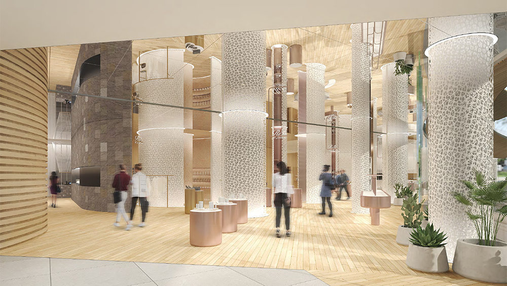 建物は、熱田神宮や周辺の自然に呼応する緑の丘をイメージし、曲線テラスを取り入れたデザインになります。広場を包み込むように建物を配置し、広場に面したエリアは一般開放する計画です。健康・美容をテーマにした飲食店舗や、日本の工芸作品に触れられるエリアも予定されています。