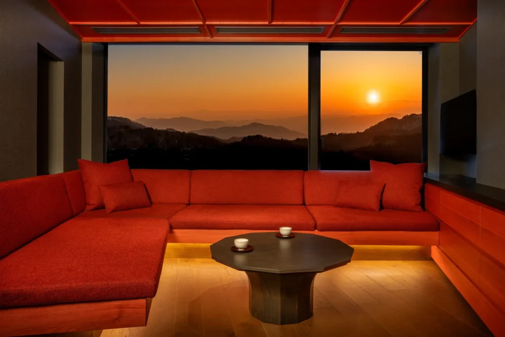 全室に大きなパノラマビューの窓を設けており、蔵王の四季の風景を客室から楽しめる点も特徴です。界ブランドが各地で展開してきた「ご当地部屋」の文脈を踏まえつつ、山形らしさを色彩、素材、家具にまで落とし込んだ設計となっています。