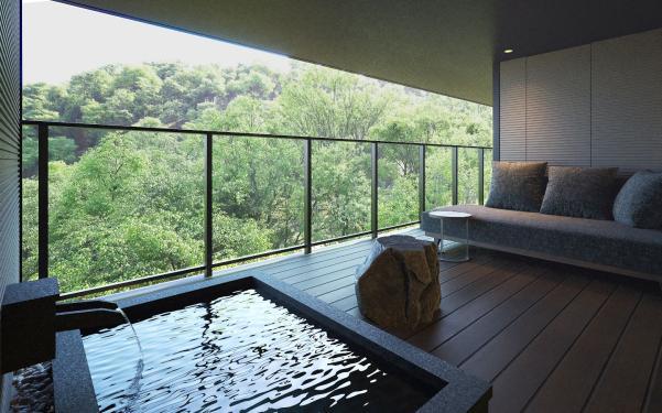 計画地は、箱根登山鉄道「強羅」駅から徒歩約9分、箱根登山ケーブルカー「公園上」駅から徒歩約3分の立地です。ホテルは総客室数94室で、全室50㎡以上のラグジュアリータイプとし、客室露天風呂を備えます。一部にはドッグフレンドリールームも設け、レストラン、ラウンジ、大浴場、スパ、フィットネスも整備する計画です。計画地は神奈川県管理地の「紅葉谷」に面しており、周辺には彫刻の森美術館、箱根美術館、強羅公園なども集まっています。着工は2025年5月、竣工は2027年11月末、開業は2028年夏を予定しています。