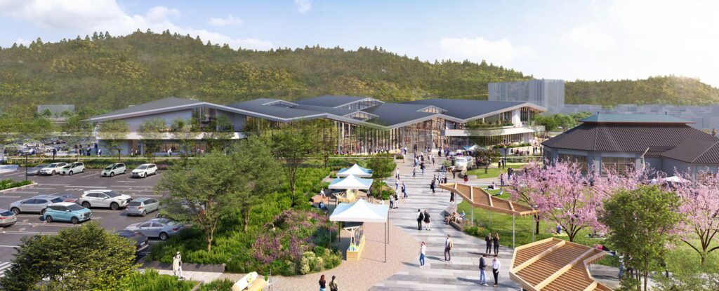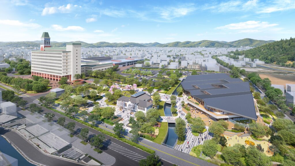 この計画の本質は、図書館を新しくすることだけではありません。市役所東側に点在していた公共施設の機能を再編集し、行政手続き、読書、学習、子育て、市民活動、文化財活用、屋外イベントをひとつの都市空間の中でつなぎ直すことにあります。