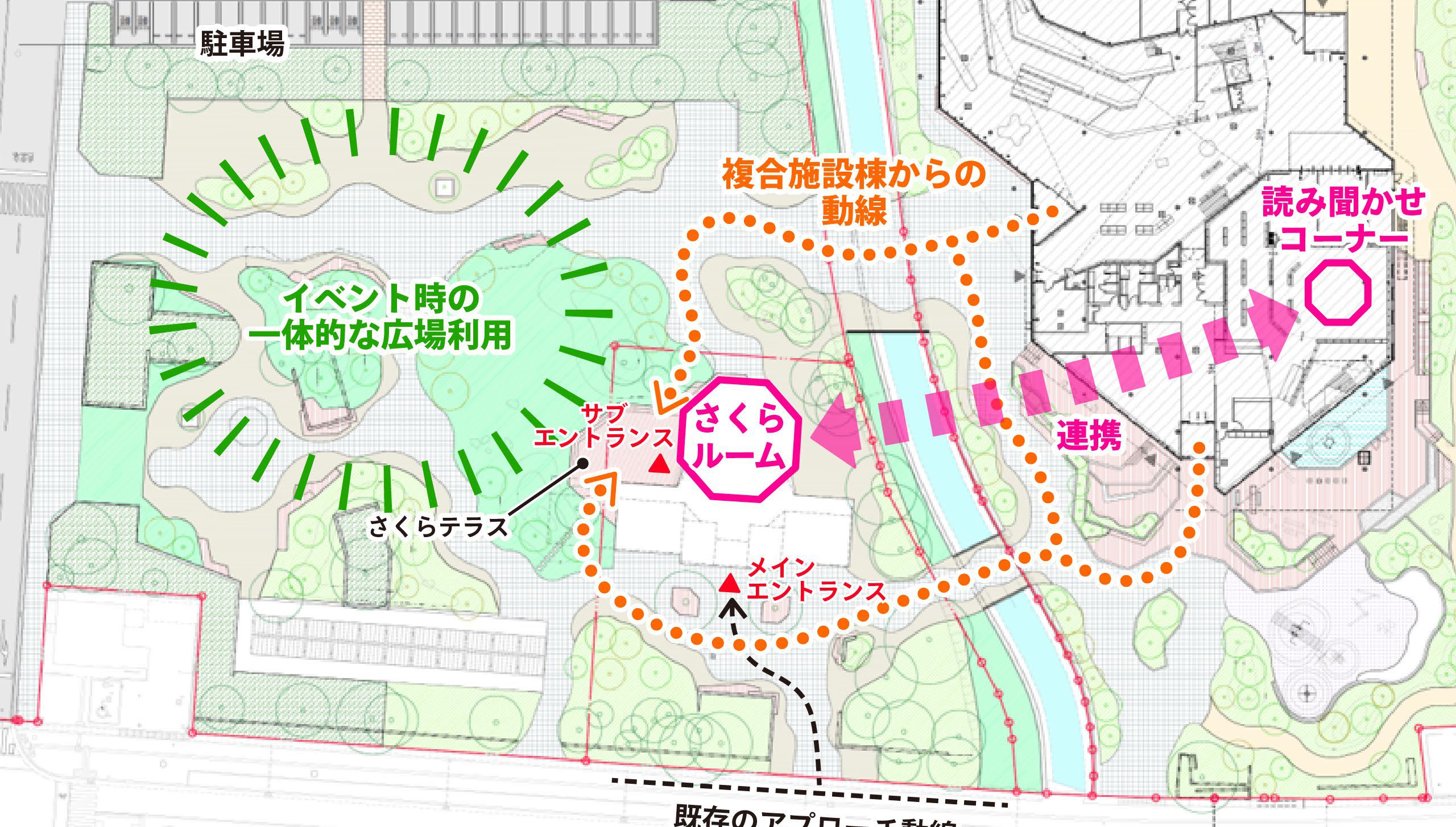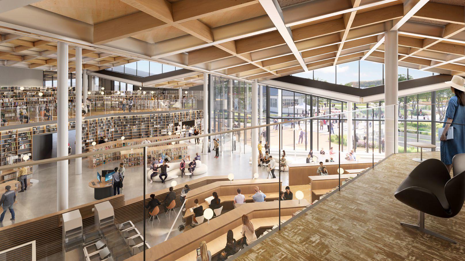 図書館を核に、複合機能を有機的に配置