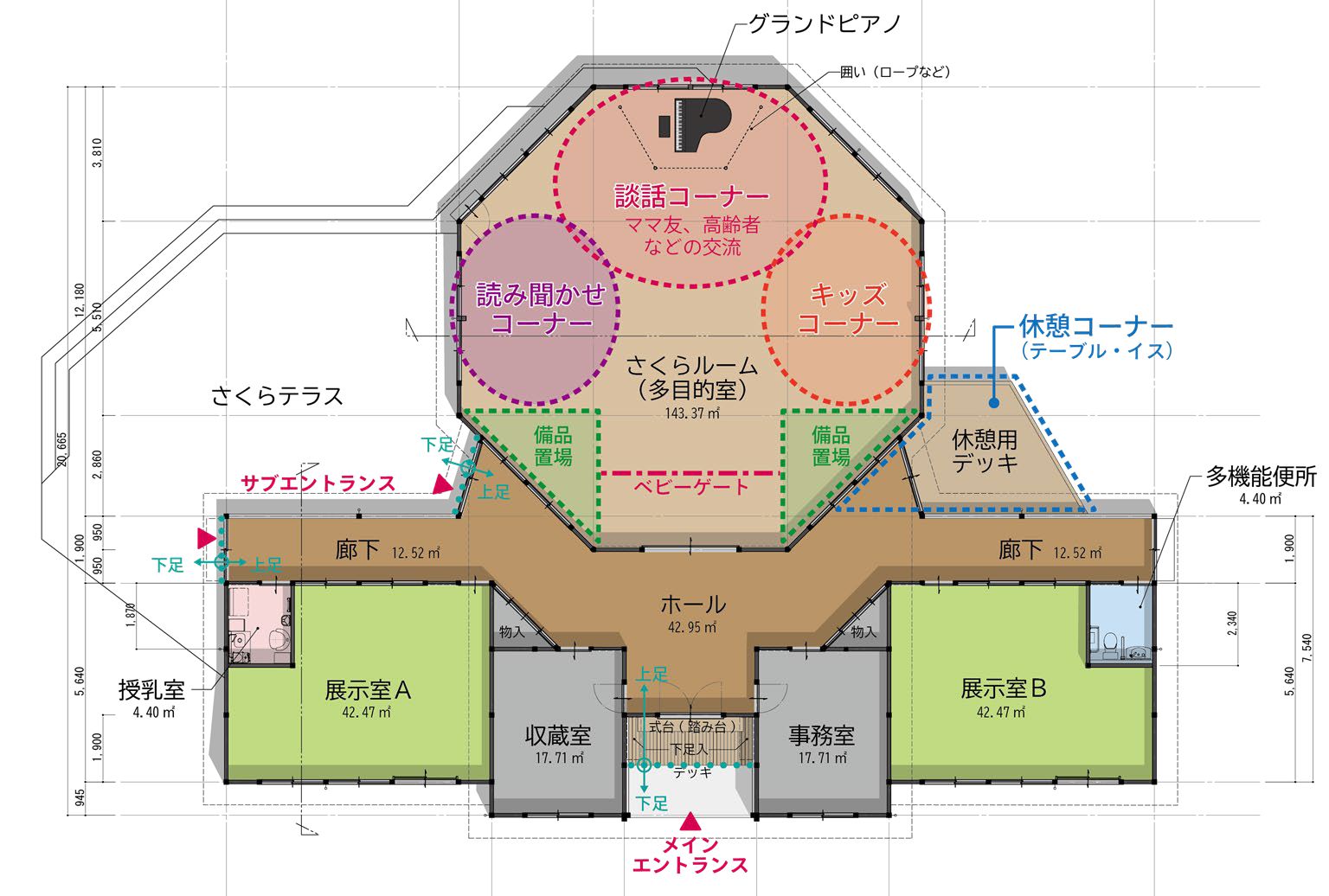 一方で、単に保存するだけではありません。旧遊戯室は、広く高い天井を持つ無柱空間の多目的室として活用し、図書館と連携した読み聞かせ、ピアノ演奏会、市民活動の発表、ワークショップなどに使えるフレキシブルな空間とします。
