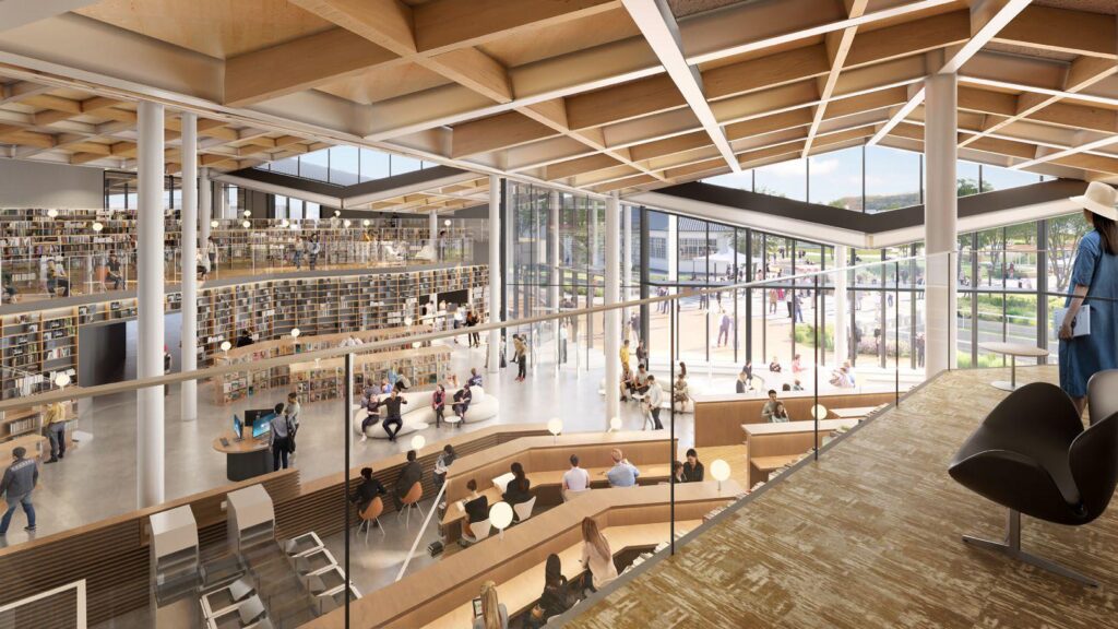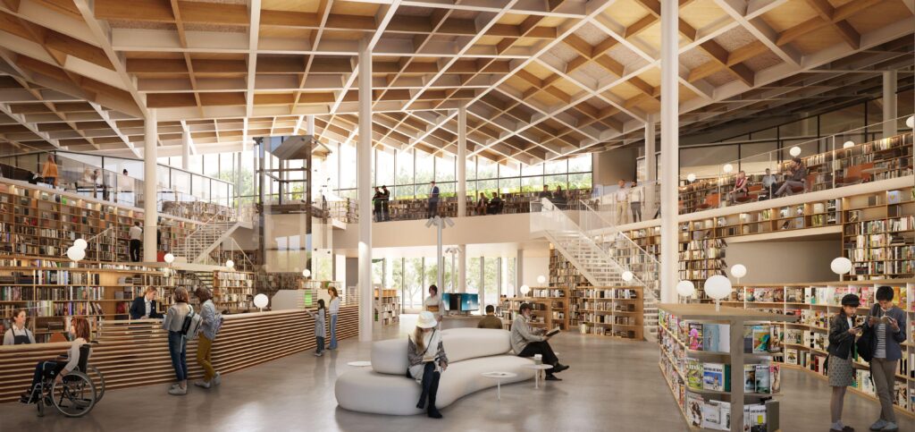 従来型の図書館は、静かに本を読む場所として設計されがちでした。しかし今回の計画では、読書、学習、子どもの読み聞かせ、市民活動、国際交流、カフェ利用が同じ建物内で共存します。図書館を「本の保管場所」ではなく、都市の日常を支える知的インフラとして再定義している点に、この計画の現代性があります。