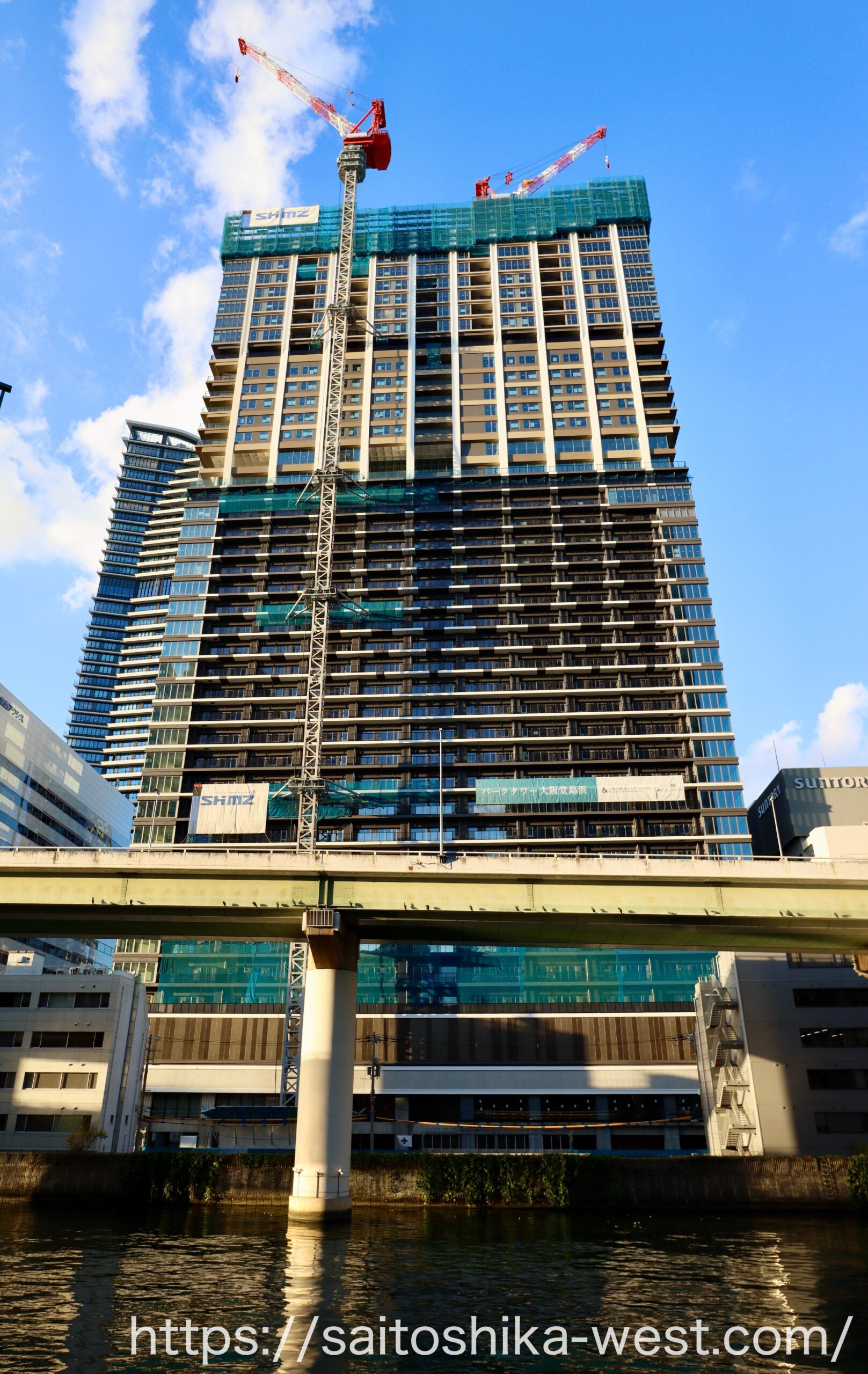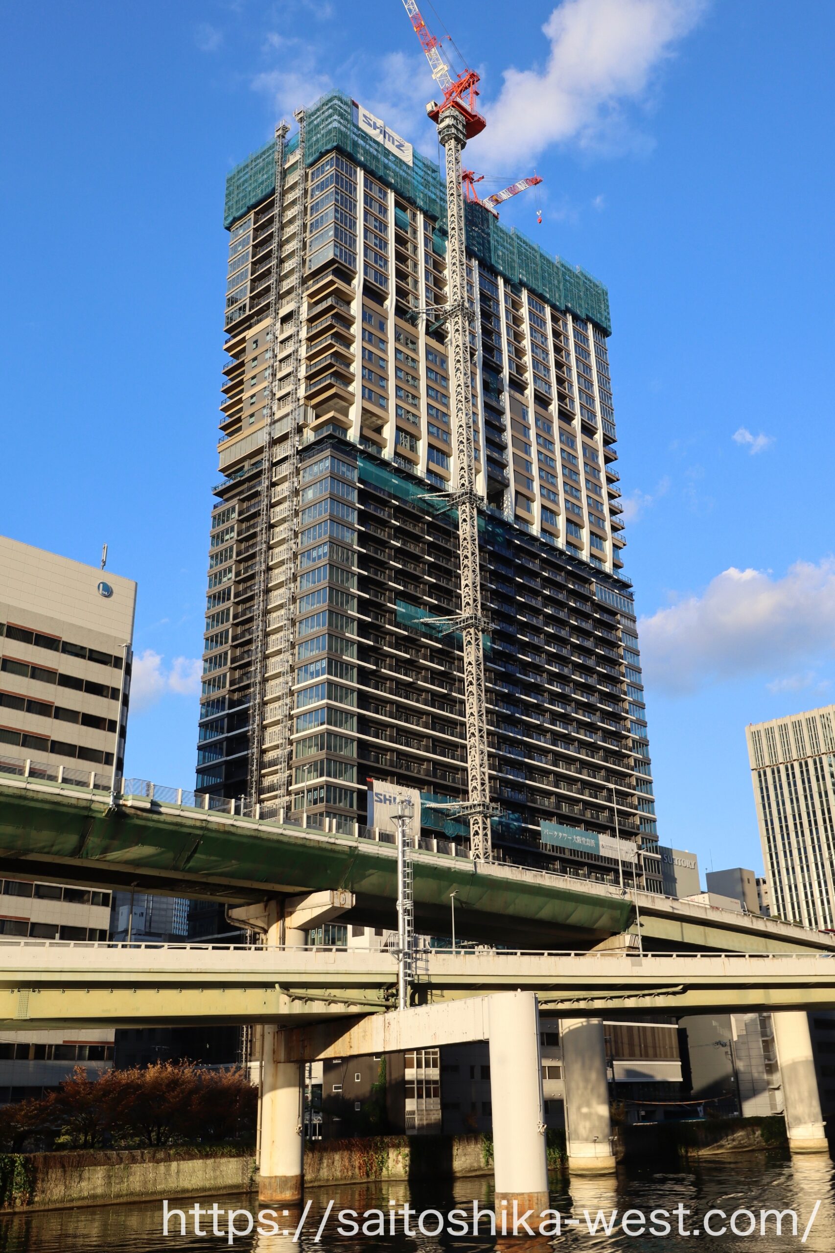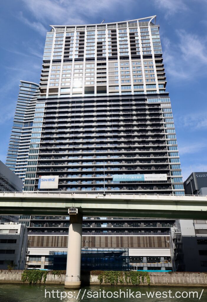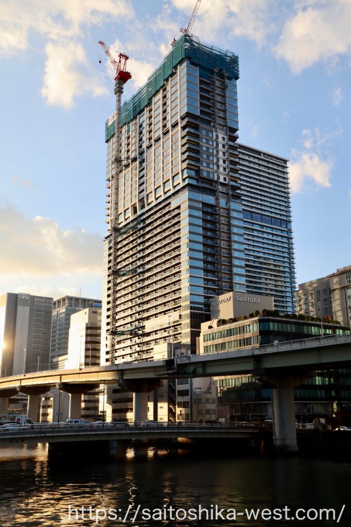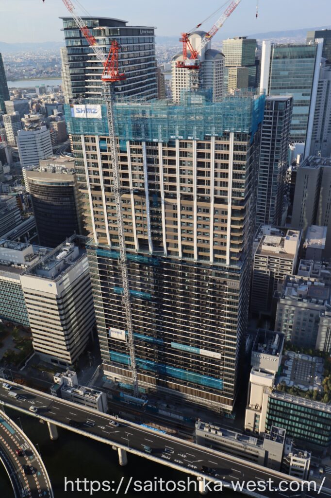 さらに離れて見た「パークタワー大阪堂島浜」の様子です。いやー、メチャクチャかっこいいビルになりましたね。
