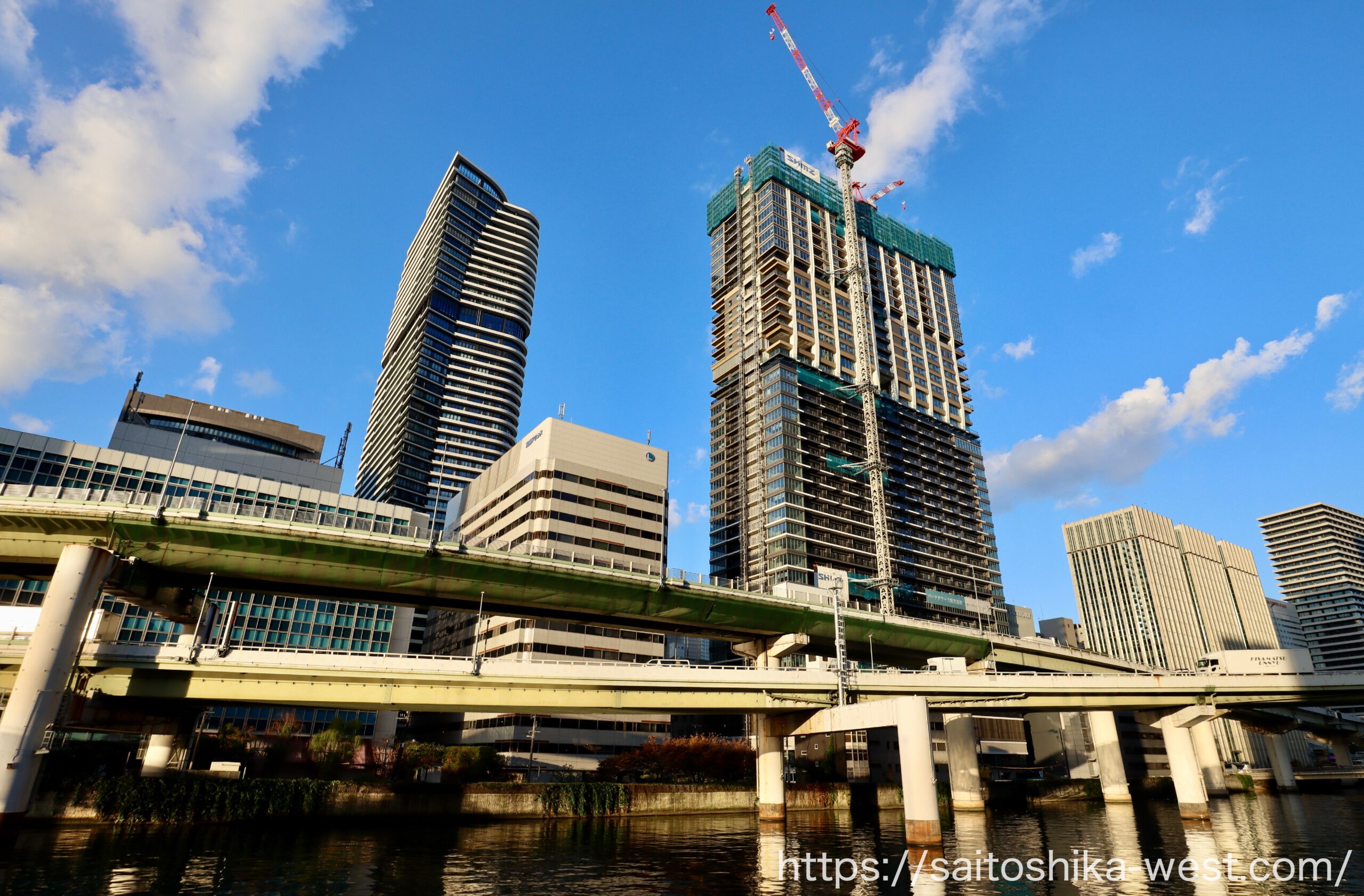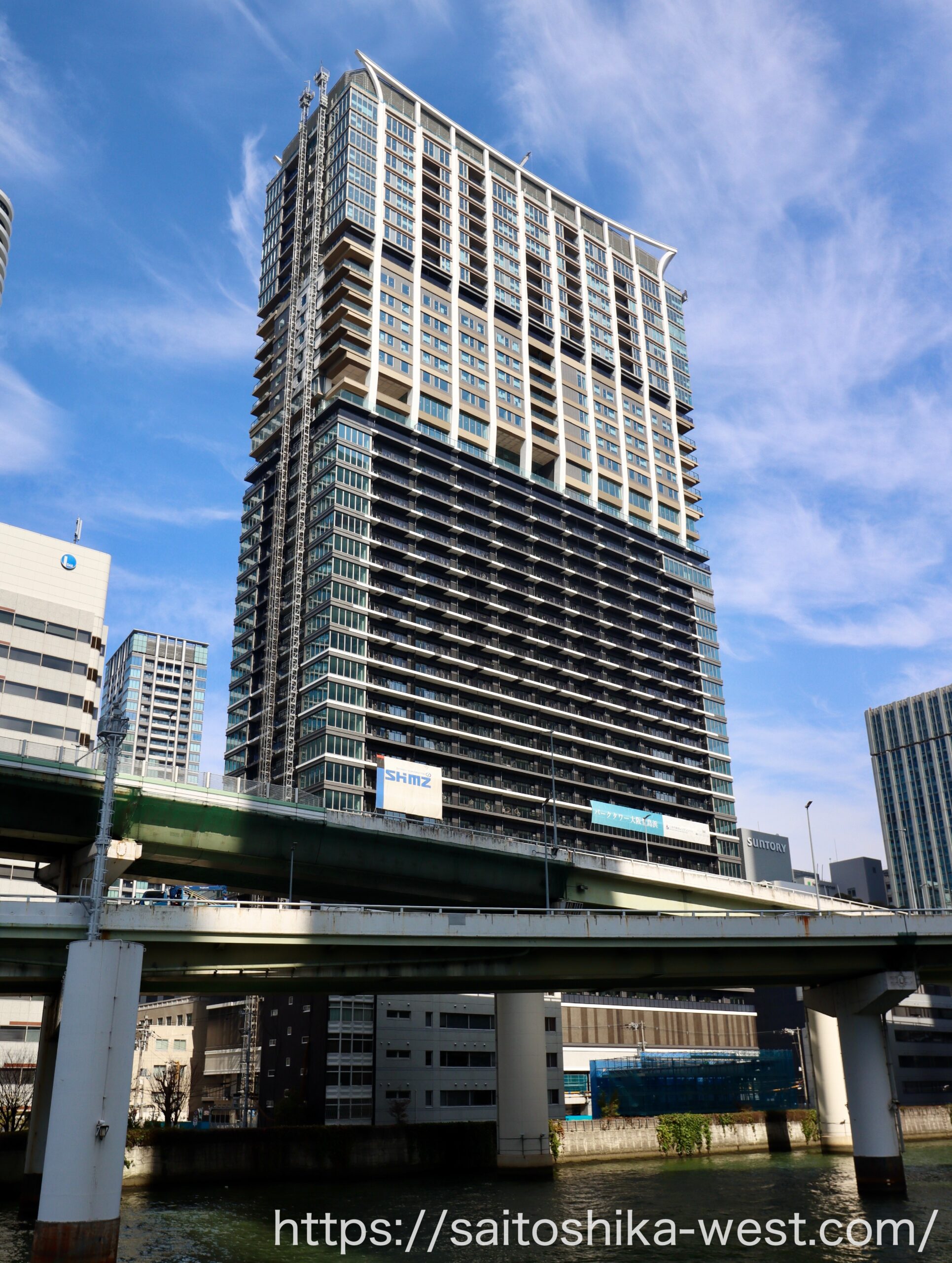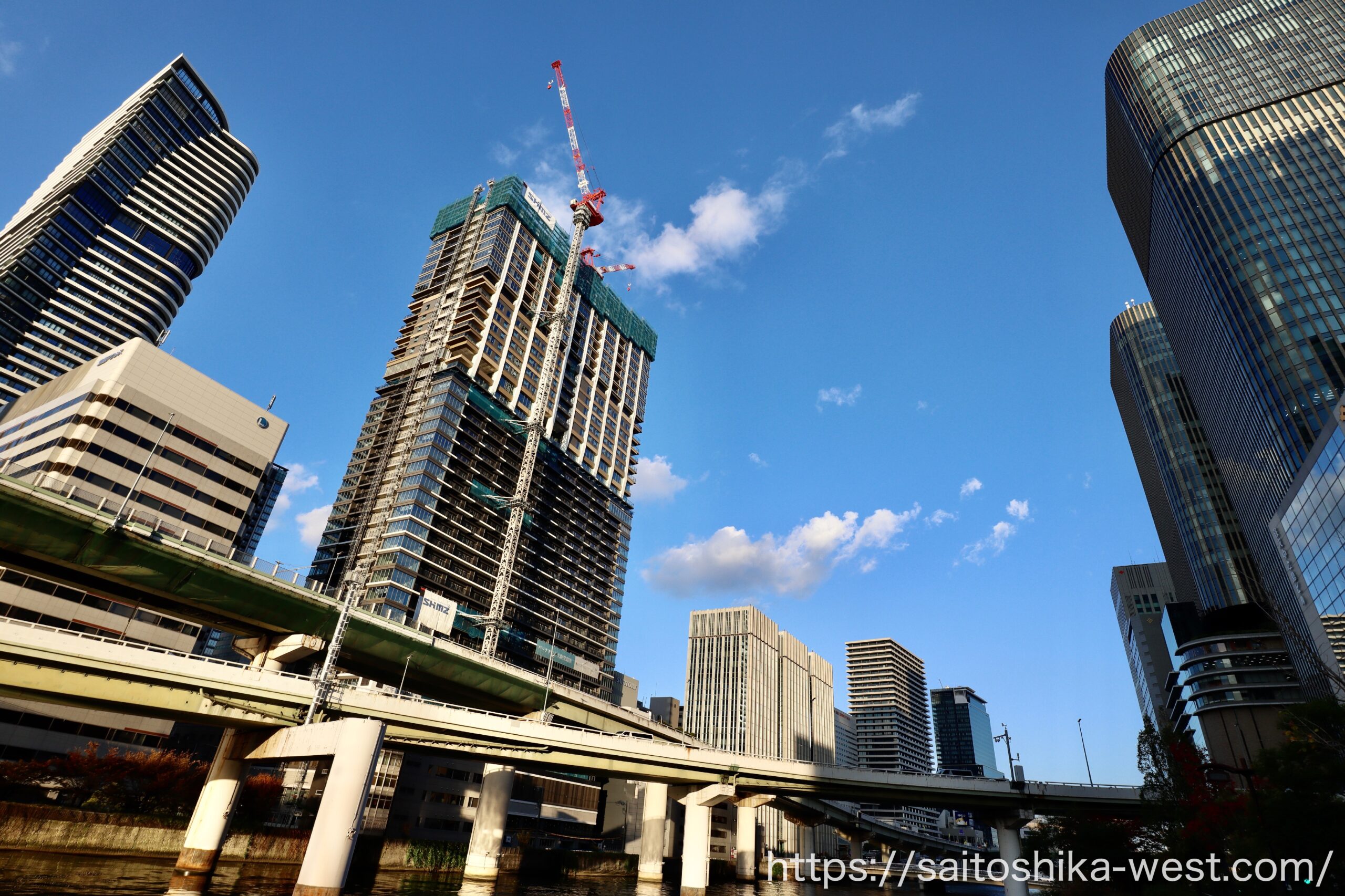 さらに離れて見た「パークタワー大阪堂島浜」の様子です。いやー、メチャクチャかっこいいビルになりましたね。