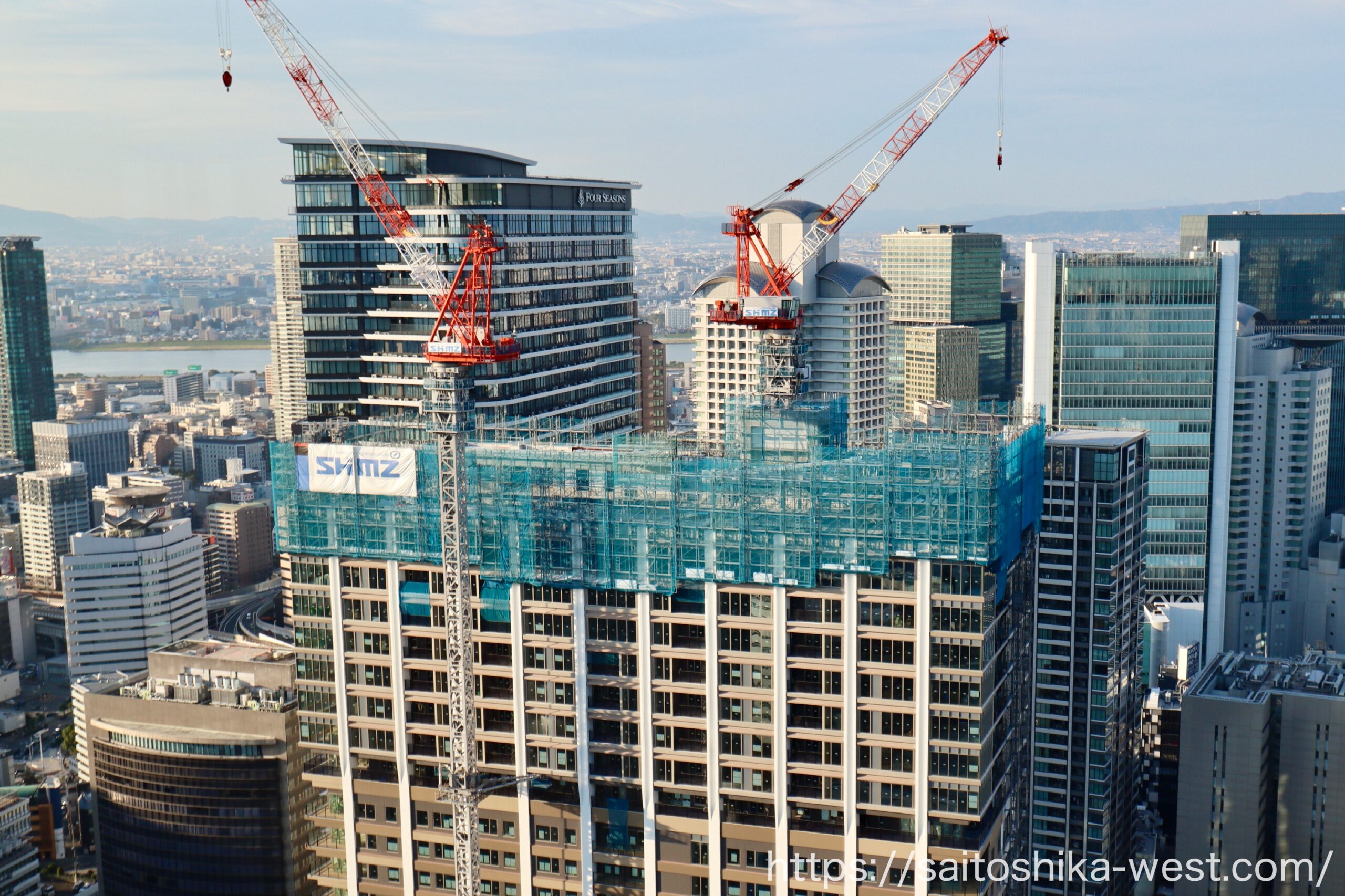 最後は南東側から見た様子です。奥に見えているのは、Brillia Tower 堂島とフォーシーズンズが入居する『ONE DOJIMA PROJECT』です。(仮称)大阪北区堂島浜2丁目計画 に入居するホテルブランドは未定ですが、立地条件に相応しいハイグレードなホテルを期待したいと思いました。