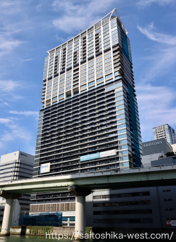 なかり角度をつけて見た、「パークタワー大阪堂島浜」の様子です。