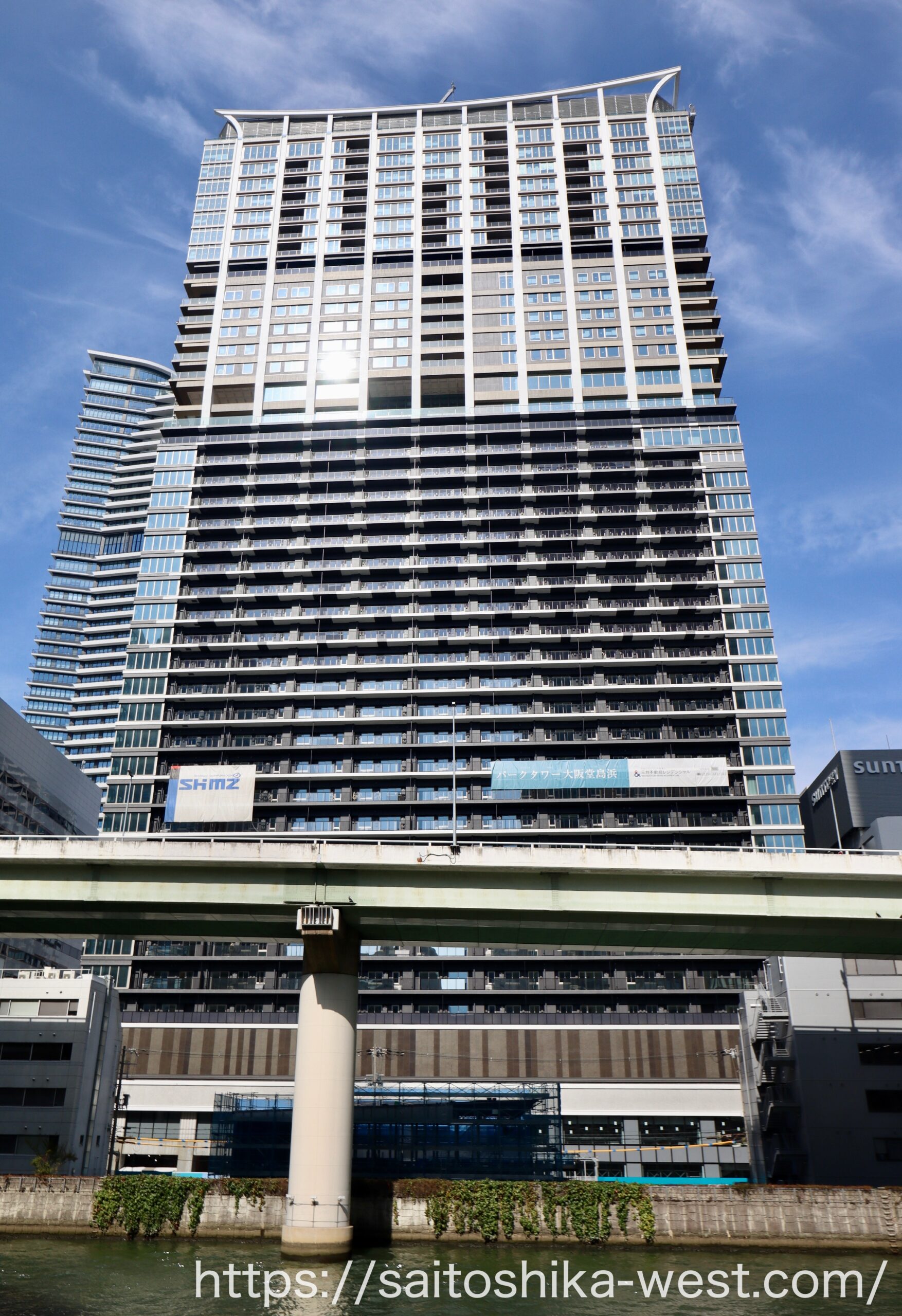 最後は引き気味で見た、「パークタワー大阪堂島浜」と、周辺の様子です。