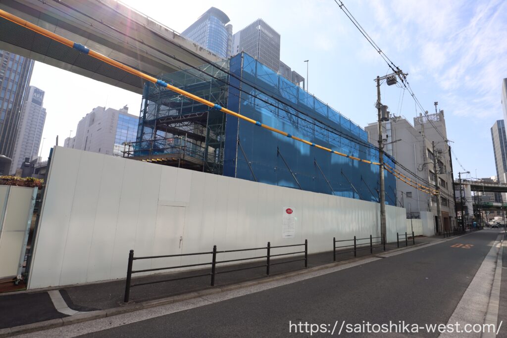 アネックス棟の計画地の様子です。既存建物に仮囲いが付けられていました。解体され地上2階建ての新ビルに建て替えられる予定です。