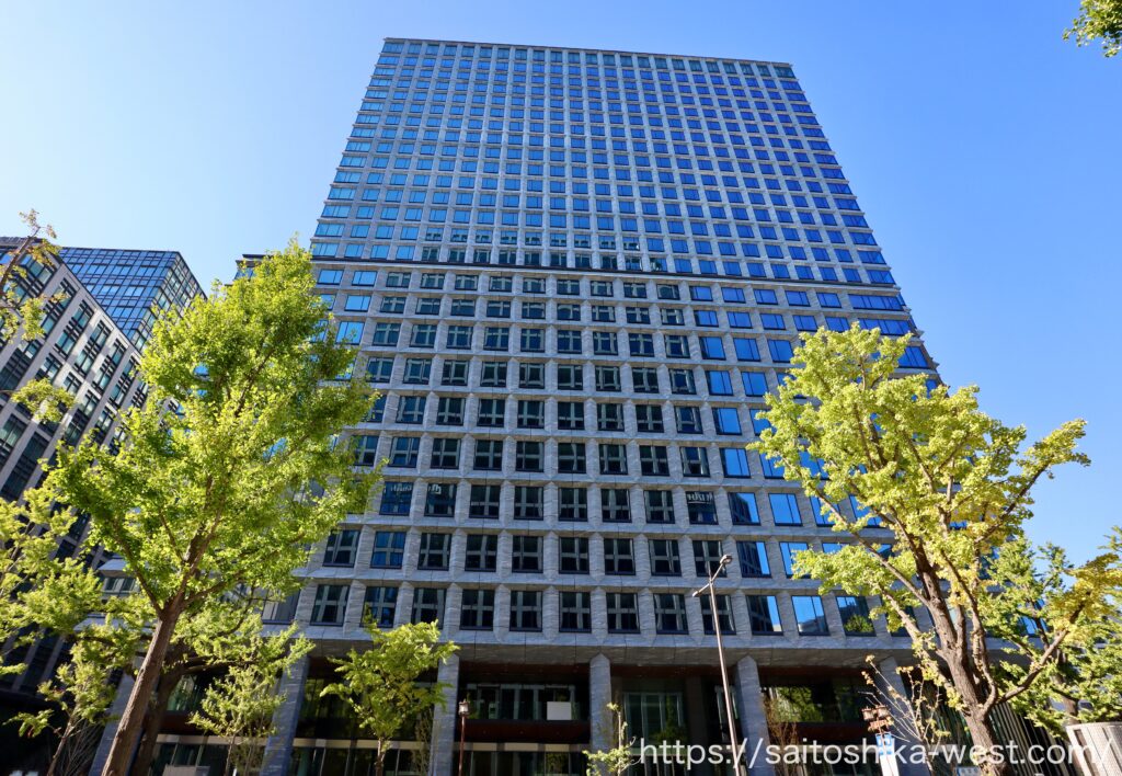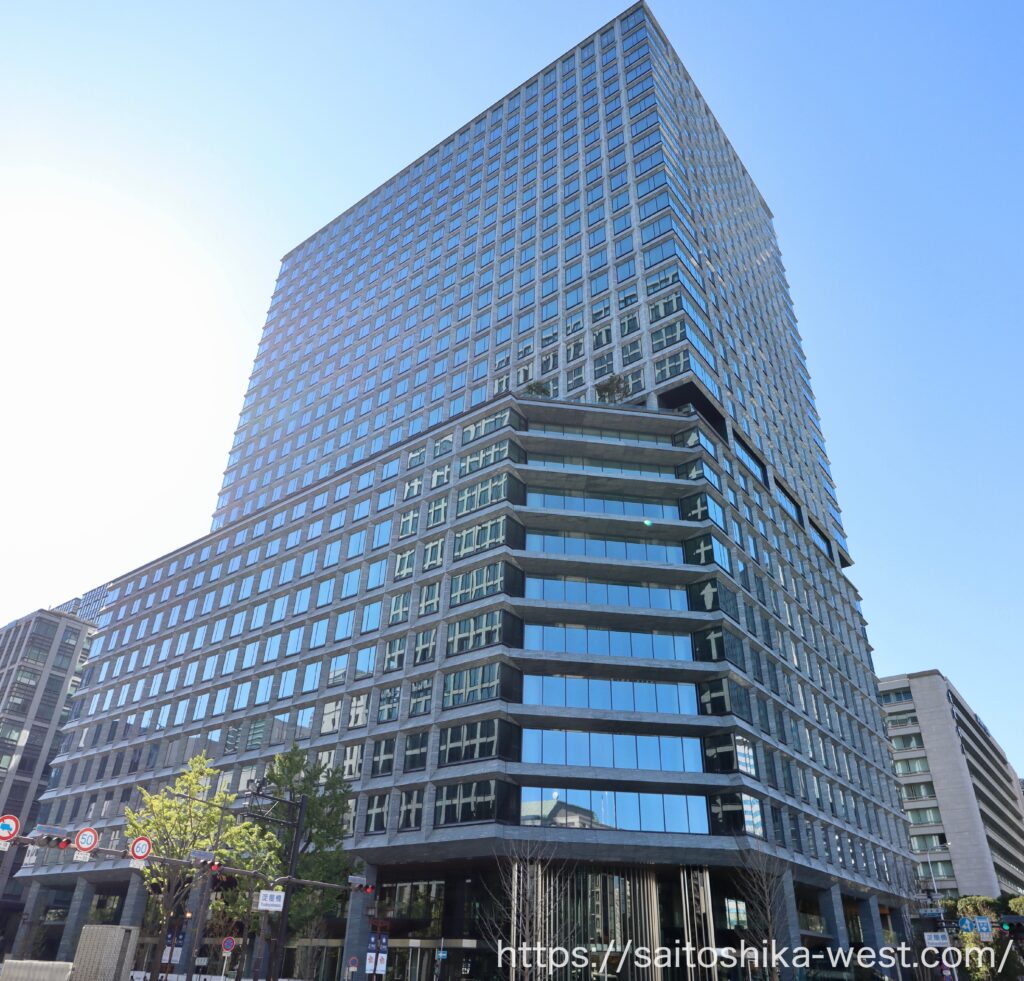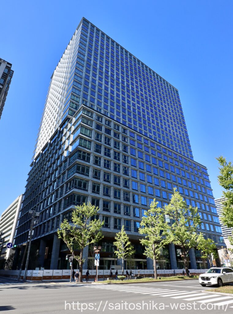 北側から見た様子です。延べ床面積が13.2万㎡に達する超弩級のオフィスビルになります。