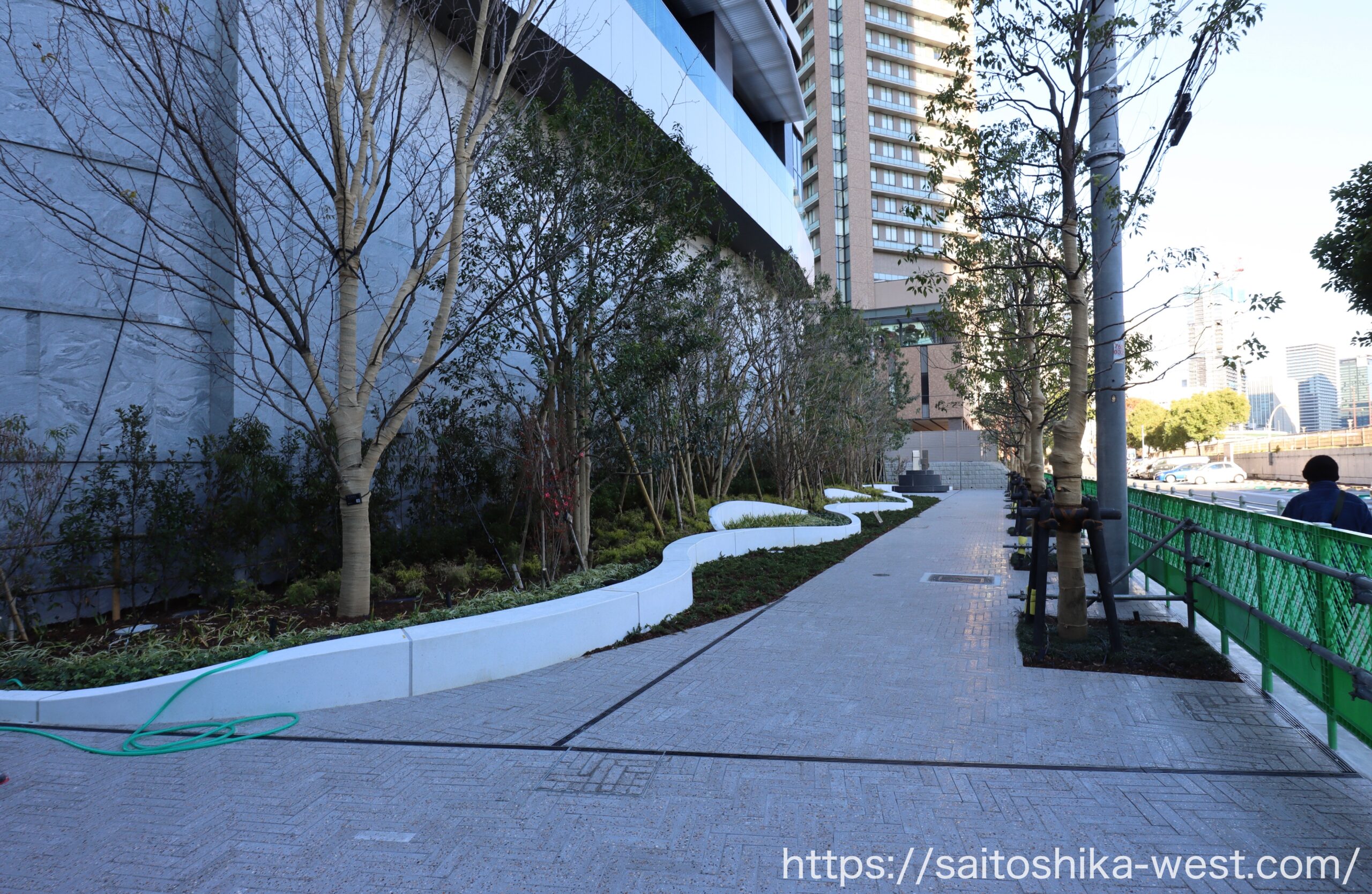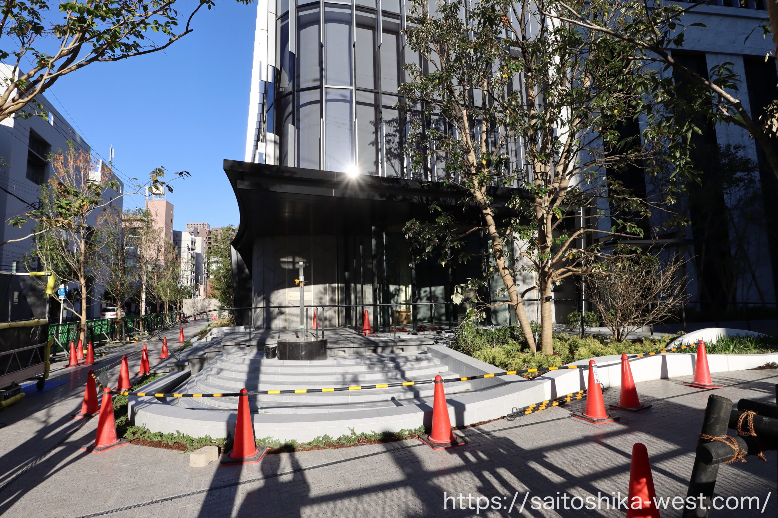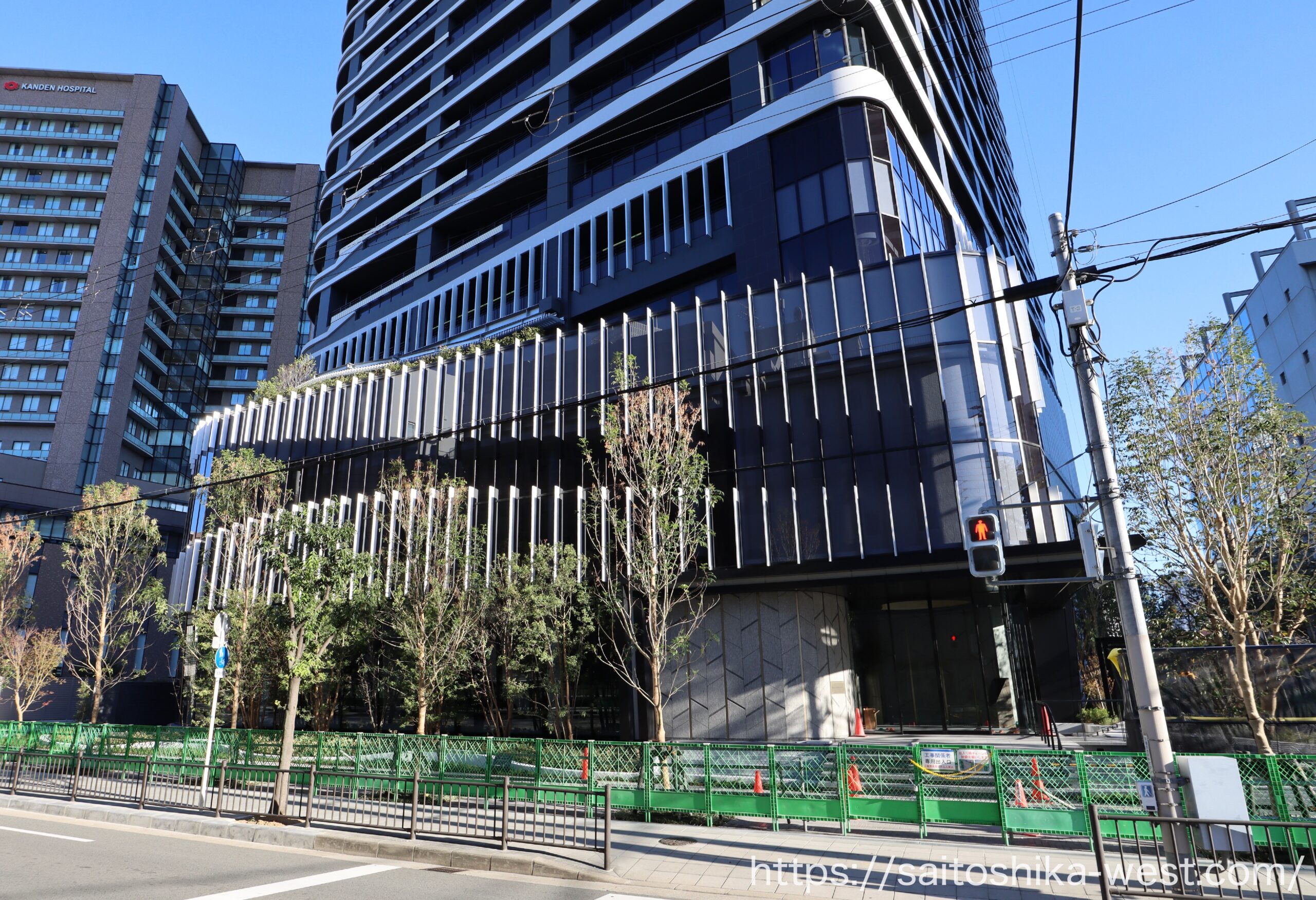 南東側から見た様子です。外観は完成状態になりました!スリムな外観形状に加え、高さが168mもあるので、かなり高く感じます。