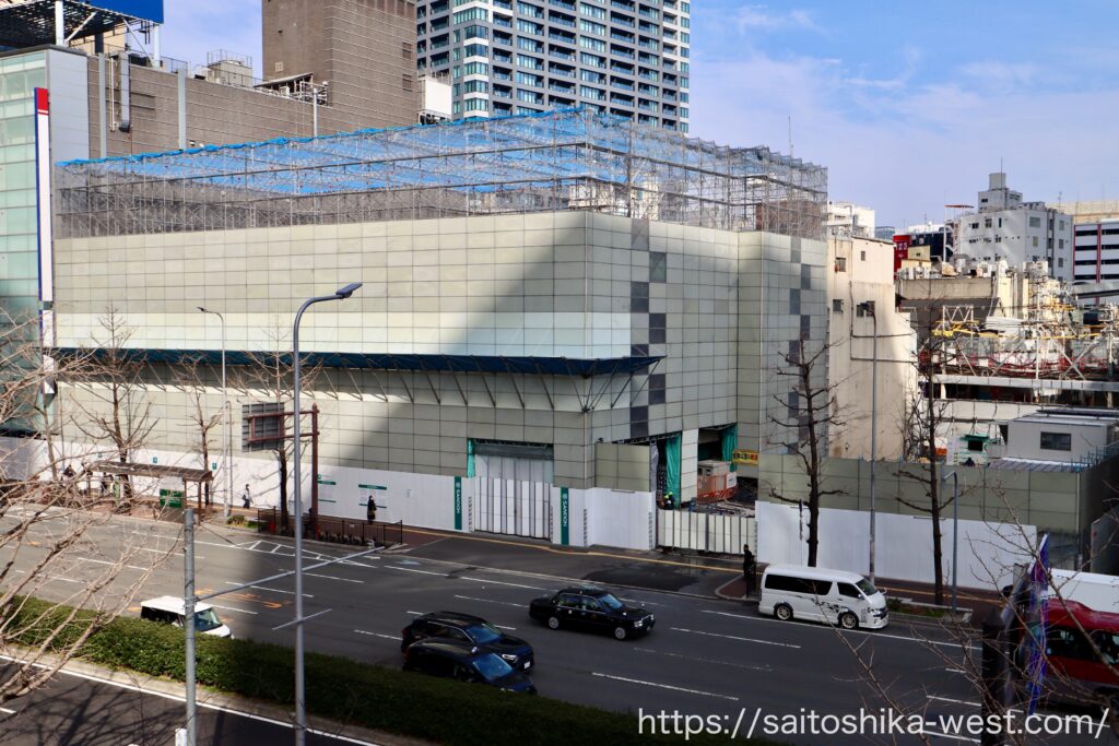 最後は北西側から見た様子です。この再開発も2021年ごろから追いかけていますが、そろそろ計画概要が知りたいところです。以前の予想では高さ80m〜100m程度のビルを想定していましたが、実際にはどの程度の規模になるのでしょうか…。