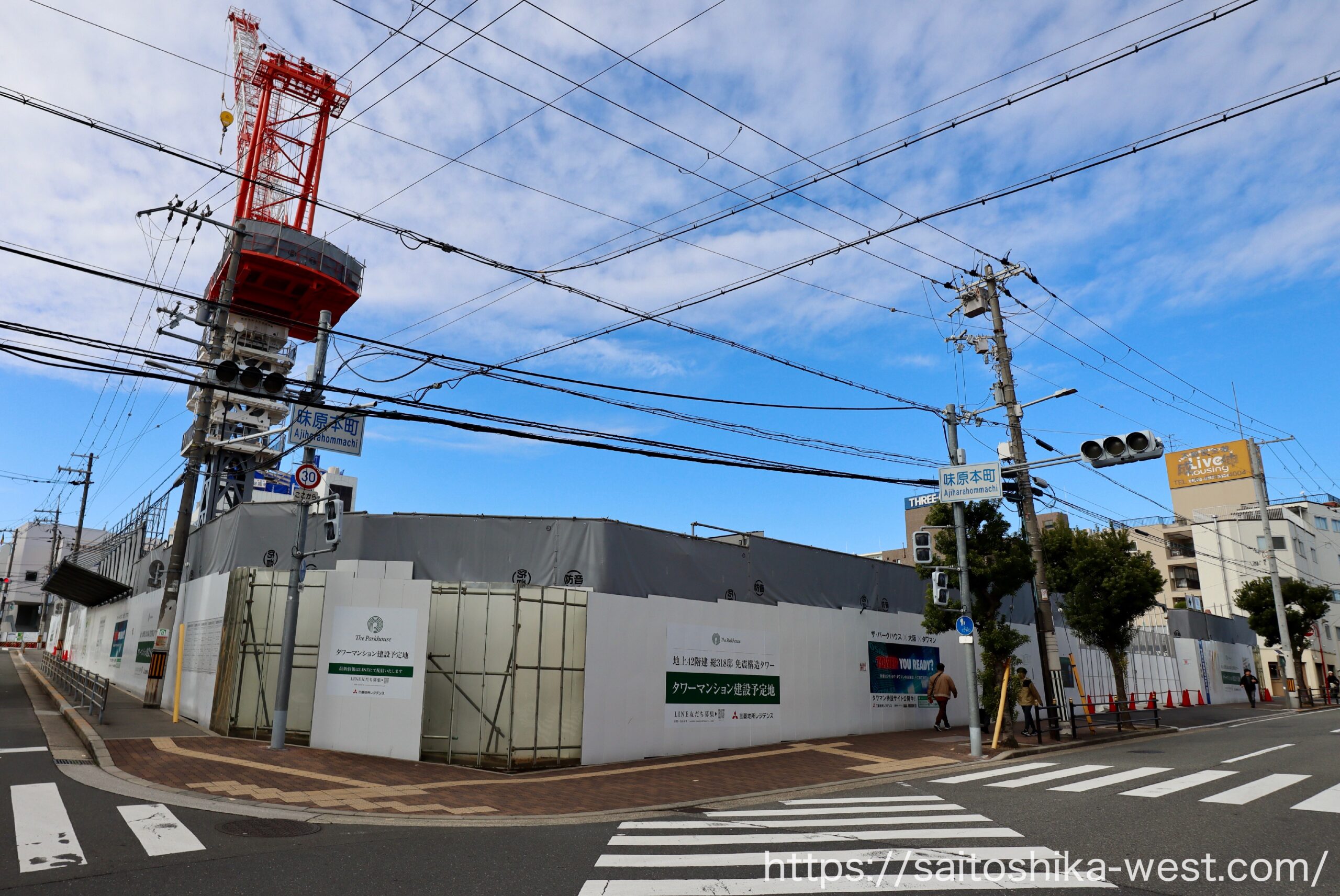 現地の様子です。前回の撮影が2022年5月だったので、約2年ぶりの取材です。以前からタワーマンションが建設される、という噂がありましたが、ついに現実のものとなりました!