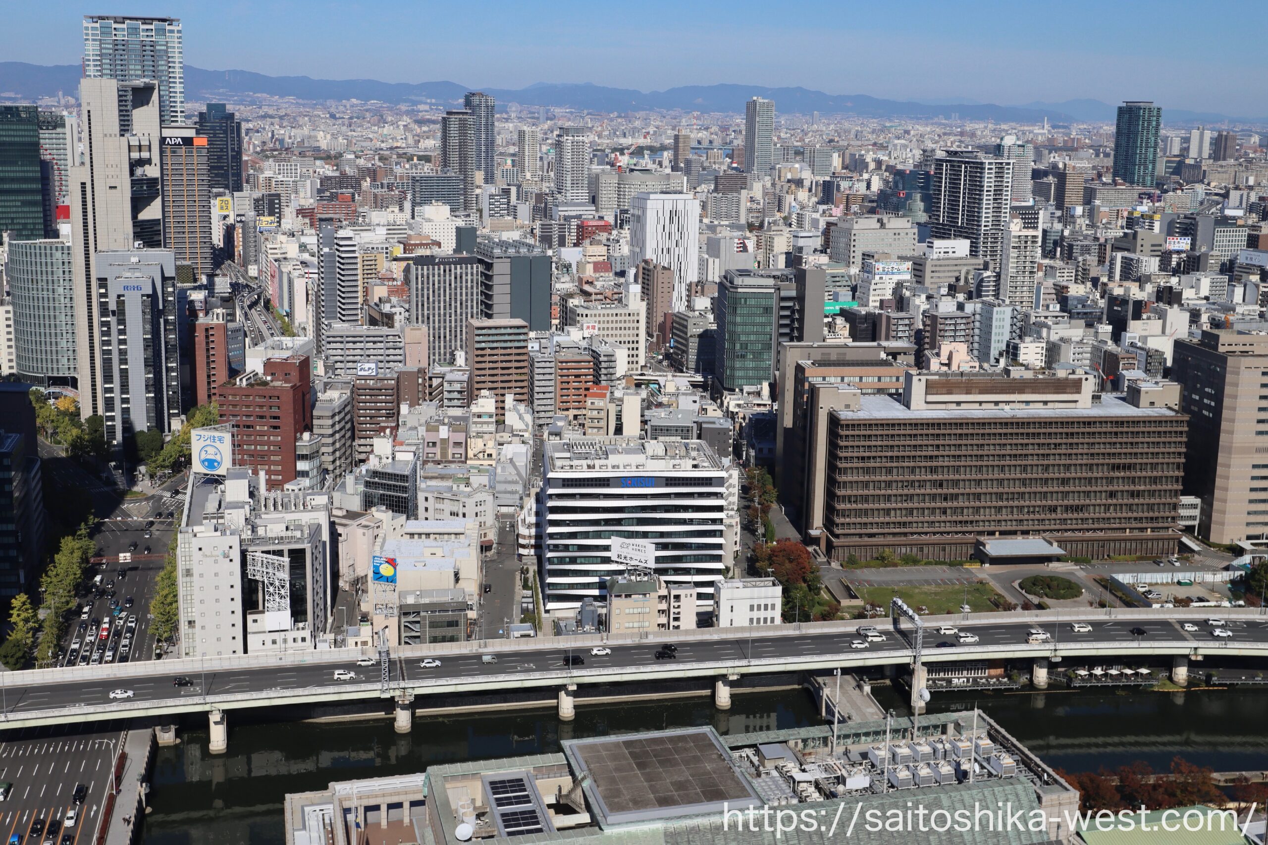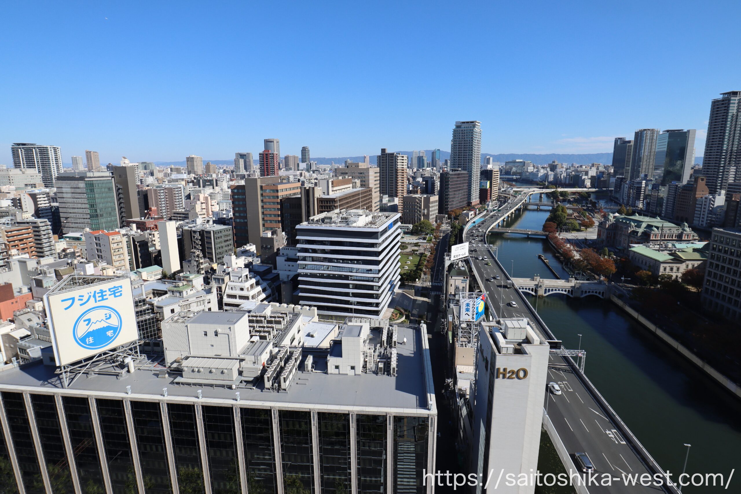 最後は、大阪堂島浜タワーの16Fに観光展望施設「WowUs(ワオアス)」から見た、現地周辺の様子です。