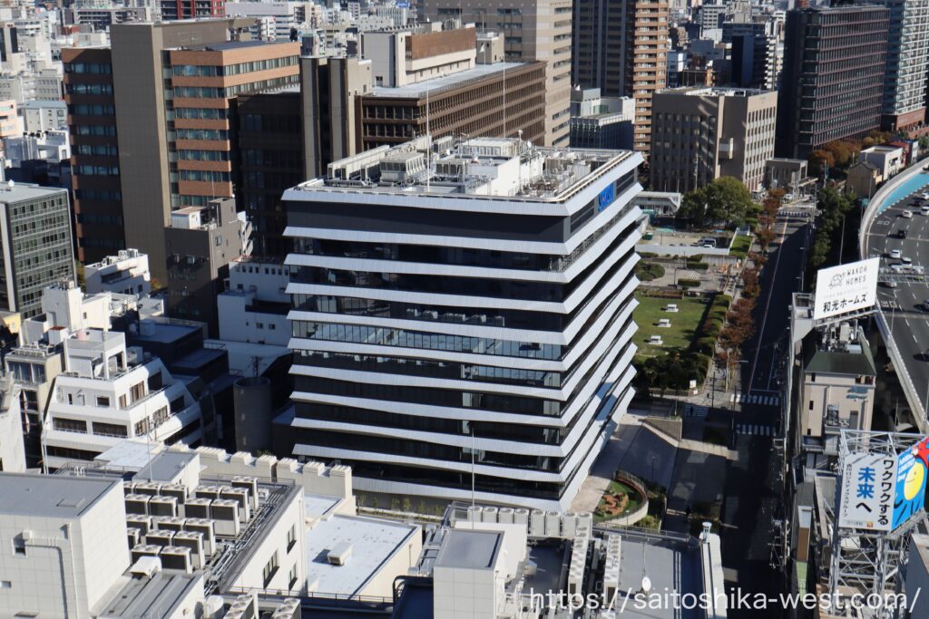 現地の様子です。堂島関電ビルは、関電不動産開発と積水化学工業が共同で大規模リニューアルを行い、2025年6月30日に竣工しました。6月にも撮影して記事にしましたが、その際は夕方の写真だったため、今回は日中の晴天時に改めて撮影してきました。