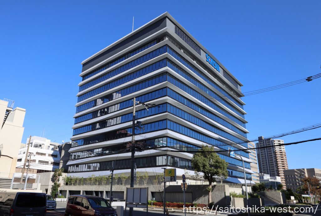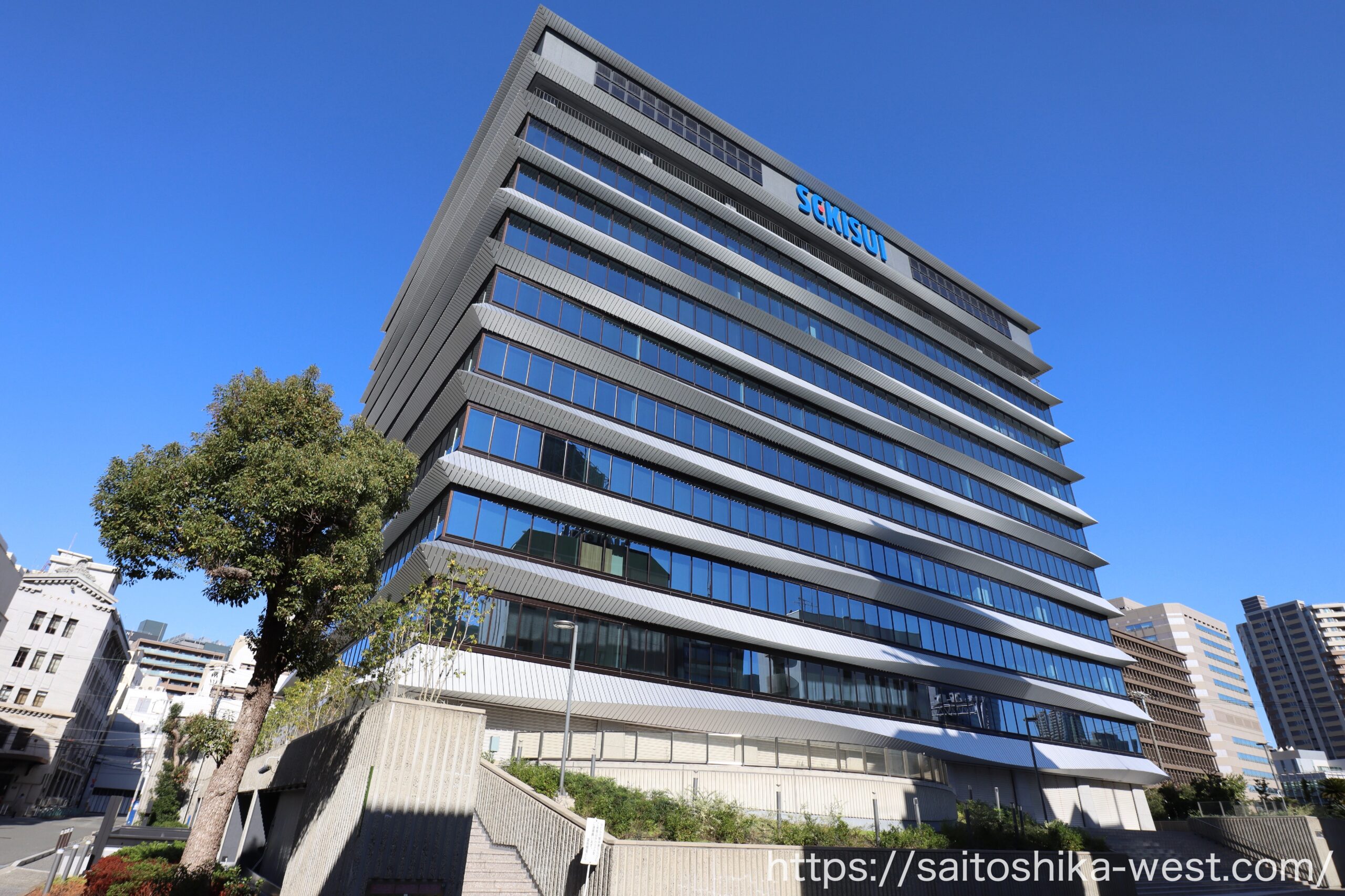 南側から見た様子です。外装は、「積水」の語源でもある“水”をモチーフとし、水都・大阪の文脈に呼応するデザインへと一新されました!