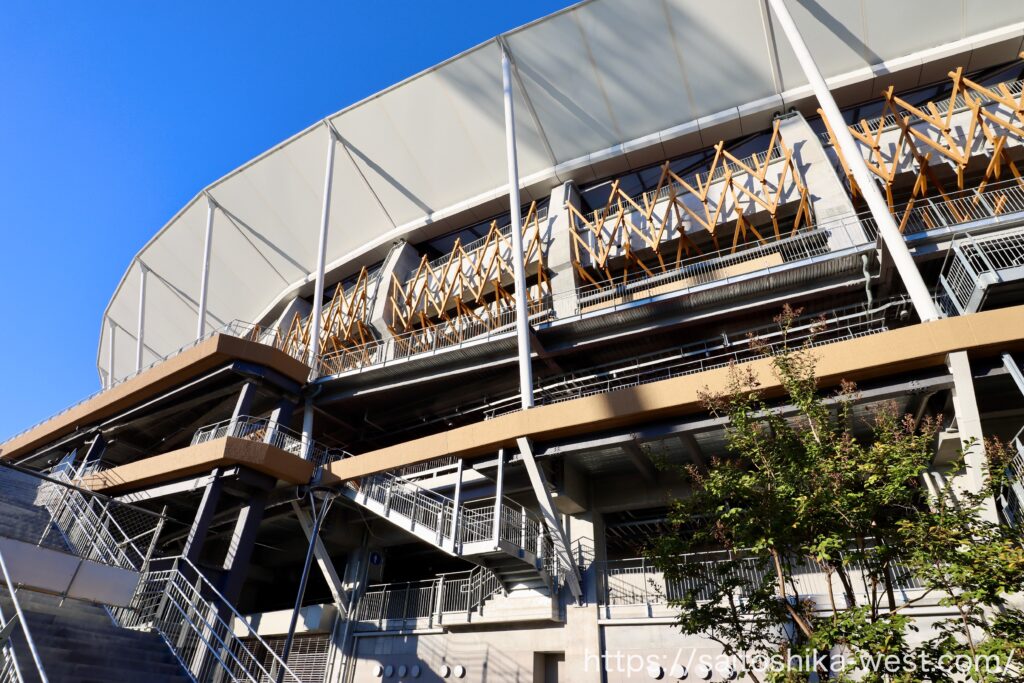 スタジアムのは、公園に溶け込みながら、名古屋の魅力を発信する自然や公園と一体となった外観デザインが特徴的です。