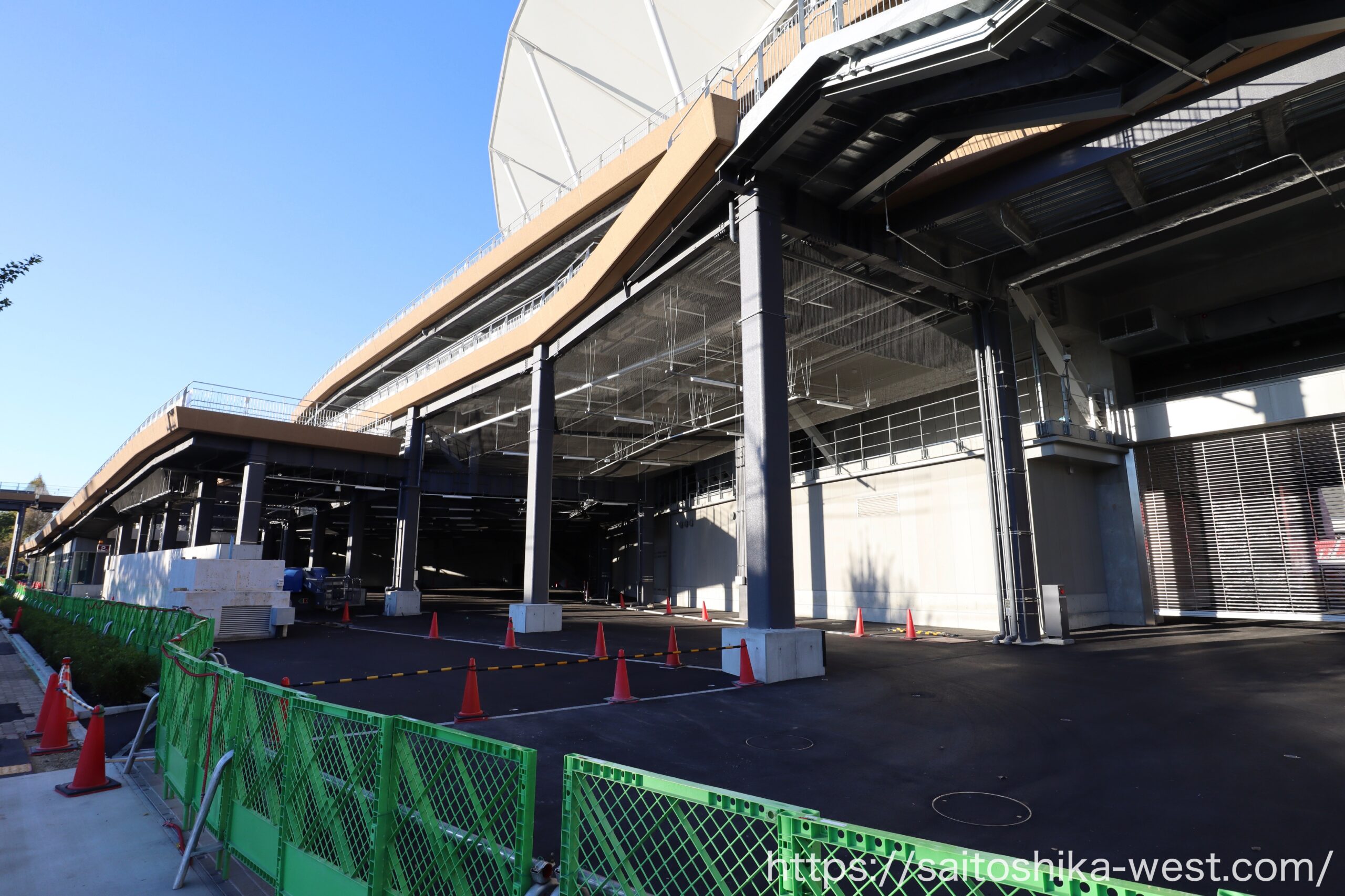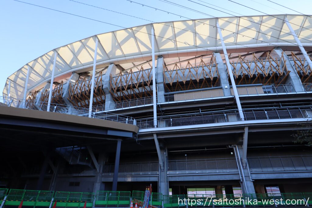 久々に現地を取材すると、外観上の特徴である曲線を描いた膜素材の大屋根が姿を表していました!