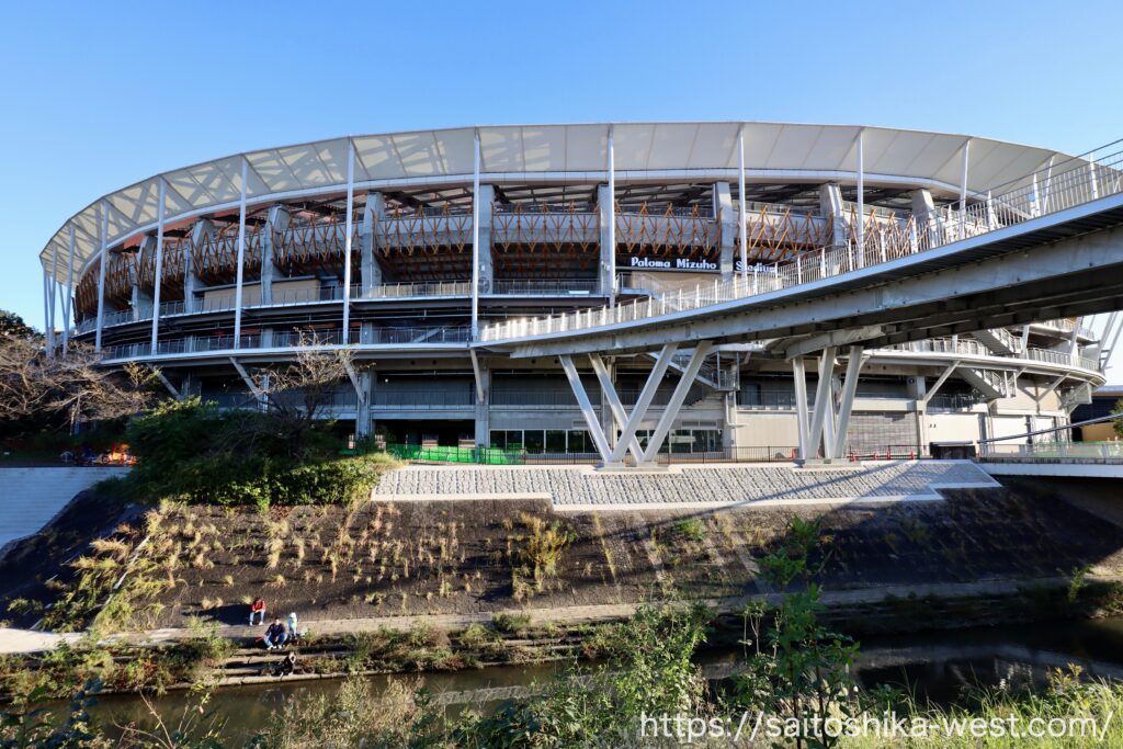 現地の様子です。パロマ瑞穂スタジアムを訪れたのは初めてでしたが、山崎川を挟んで広大な公園が整備されており驚きました。本当に環境が良くて豊かさが感じられます。