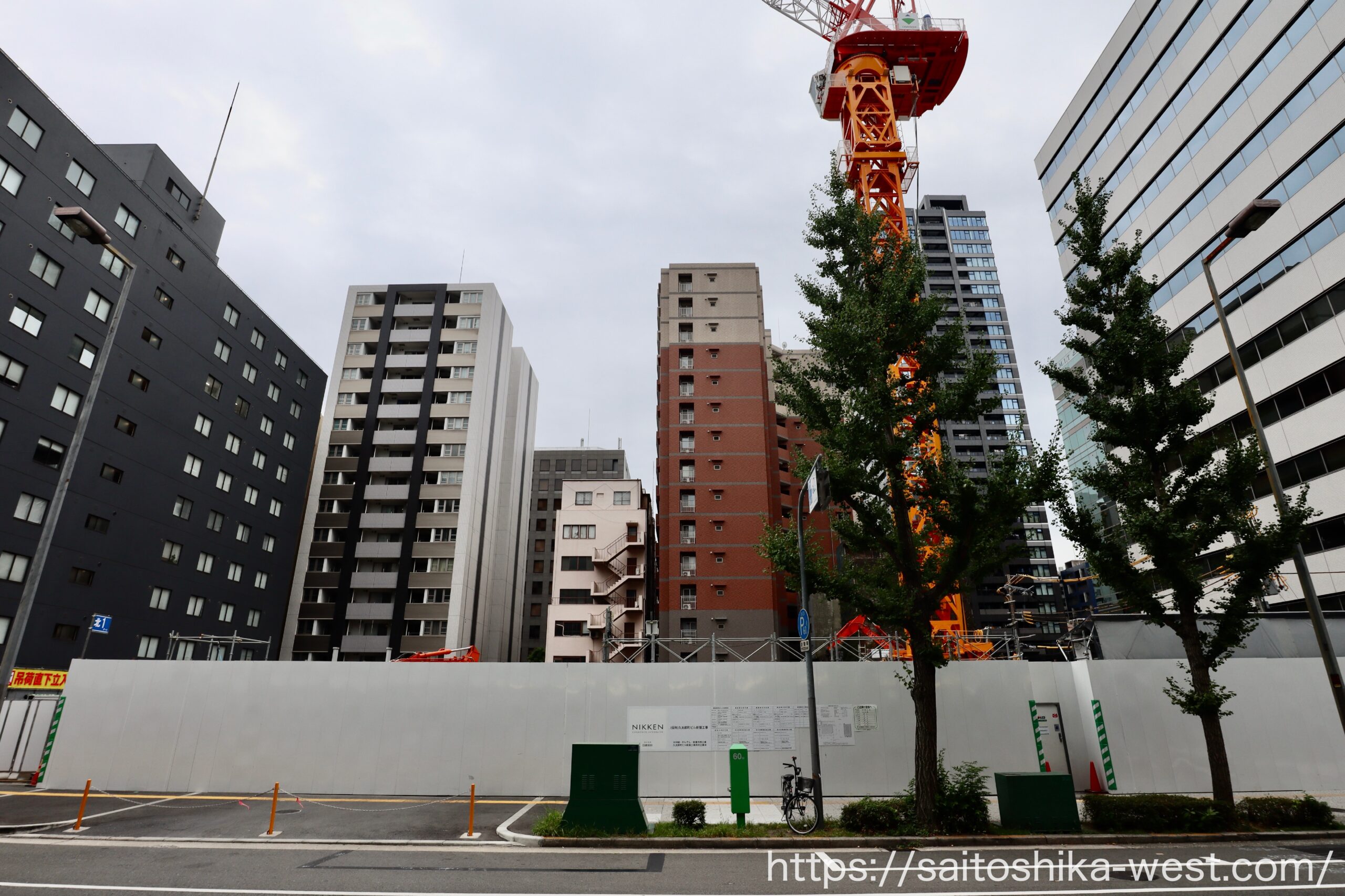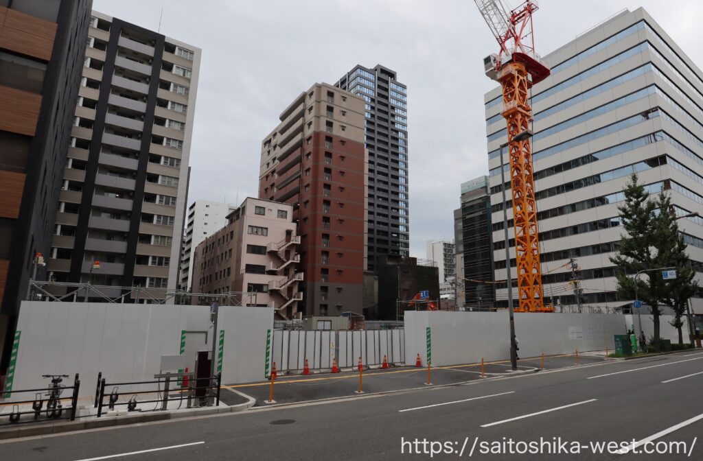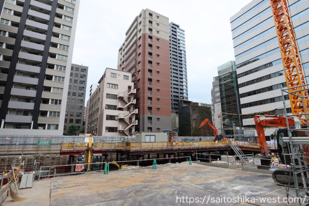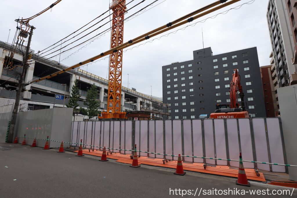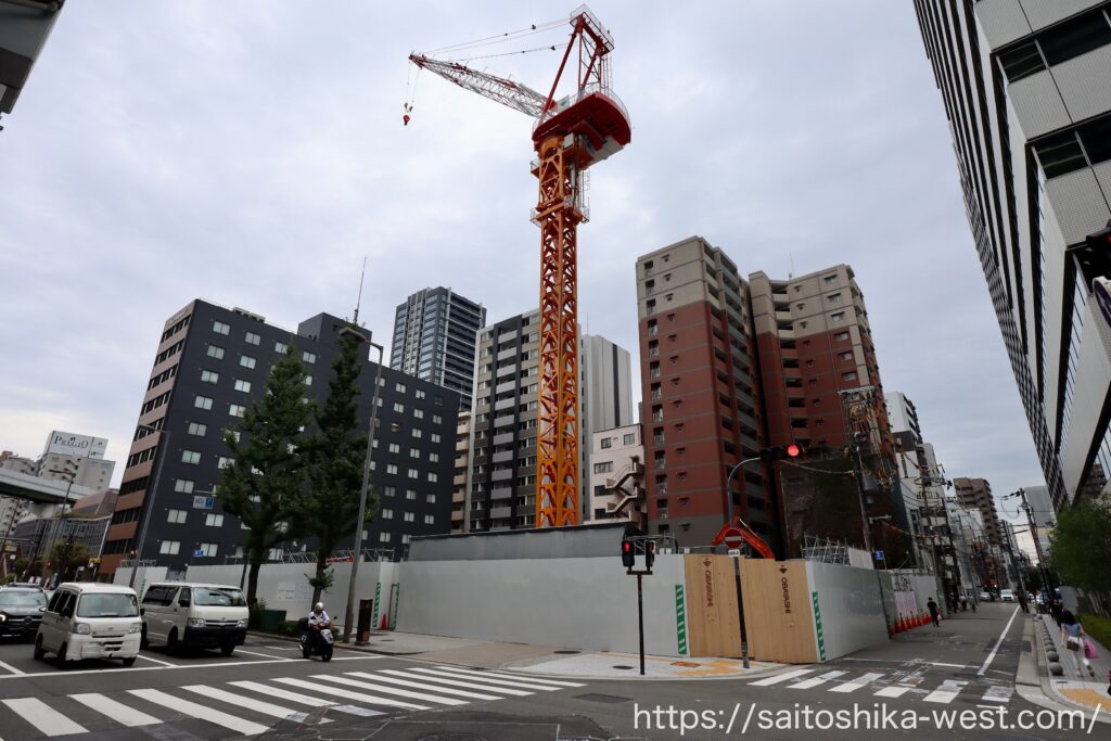 北側からの様子です。当初計画より規模は縮小しましたが、タワークレーンが設置され、工事は順調に進んでいるように見えました。