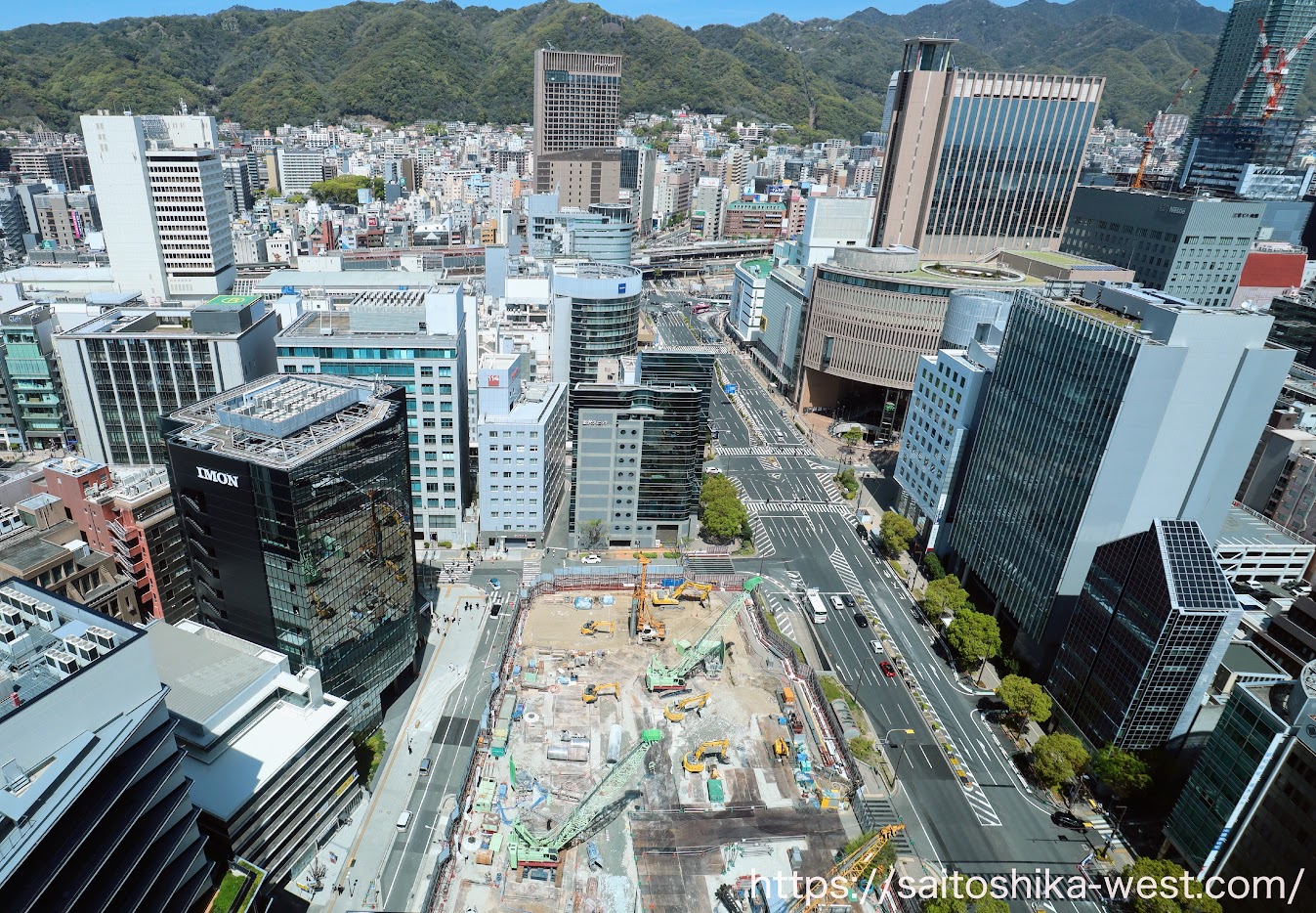 最後は南西側から見た様子です。ここ最近の神戸は、これまでの遅れを取り戻すかの如く、JR三ノ宮駅ビルや雲井通 5 丁目再開発の計画概要が発表されるなど、再開発が活発化しています。神戸市役所 本庁舎2号館の建替え再開発は、これらに続く大型案件なので、期待が膨らんできますね。