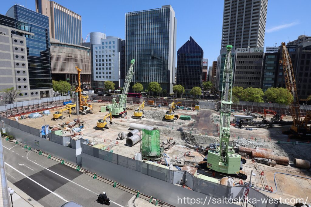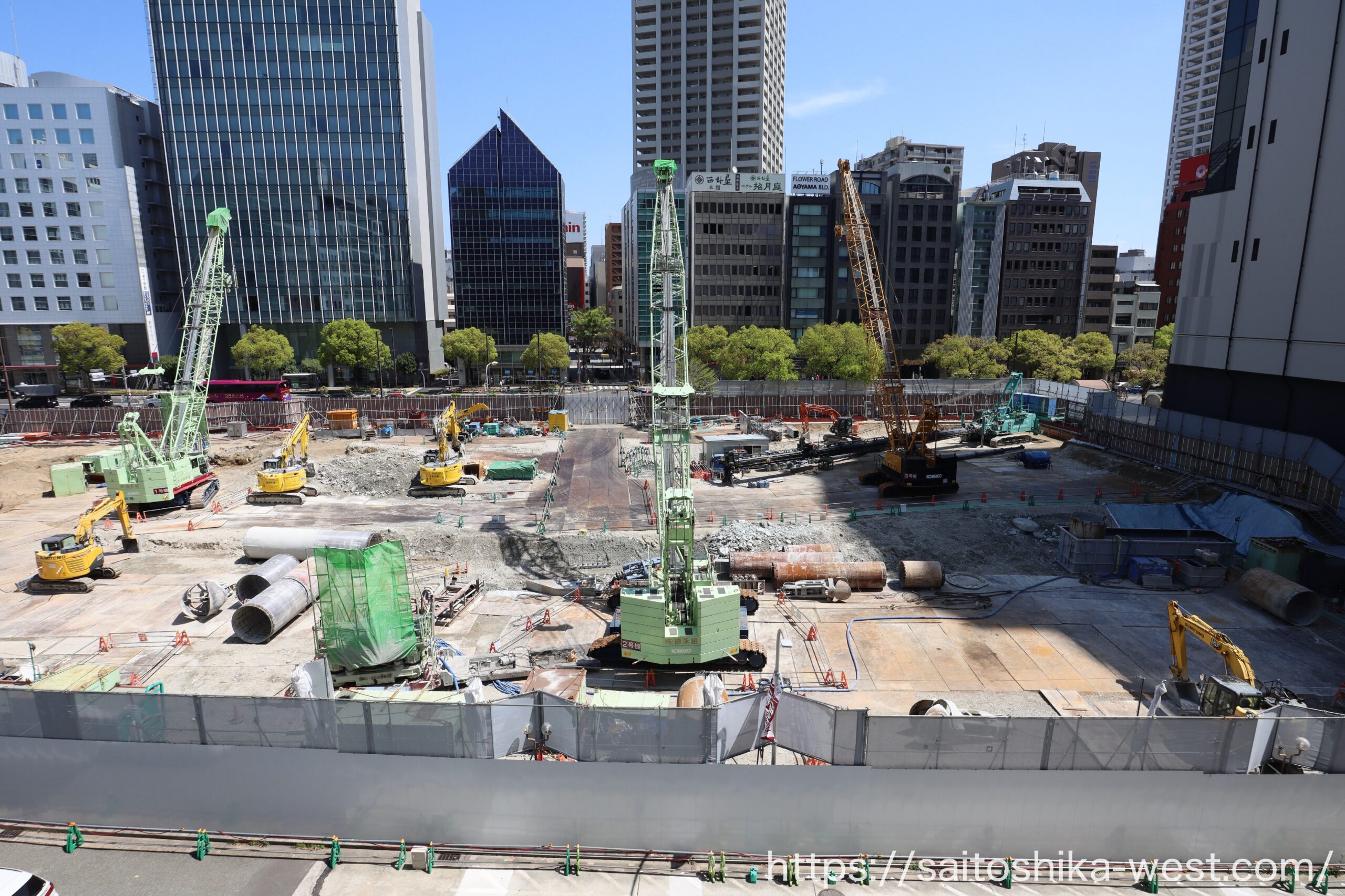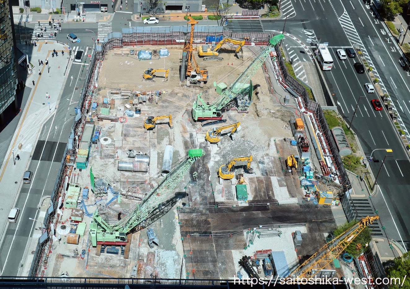 西側から見下ろした様子です。工事現場はかなり広く、想像以上に大規模なビルになりそうです。