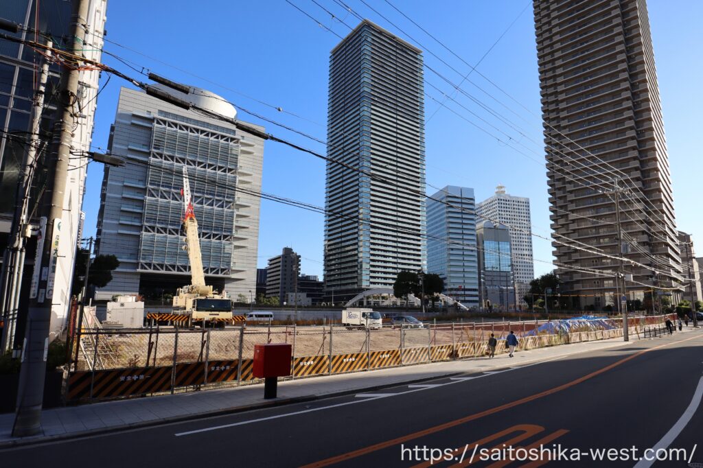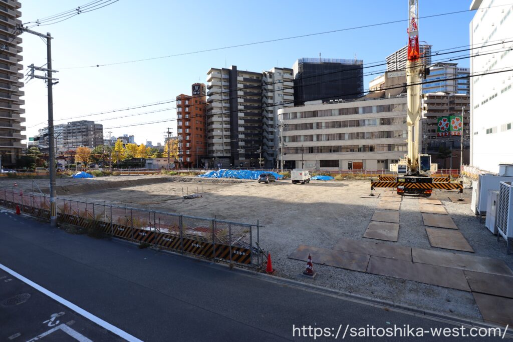 北西側からみた様子です。建設費の高騰を背景に計画が延期される事例も見られますが、この計画については、予定どおり進んでほしいですね。