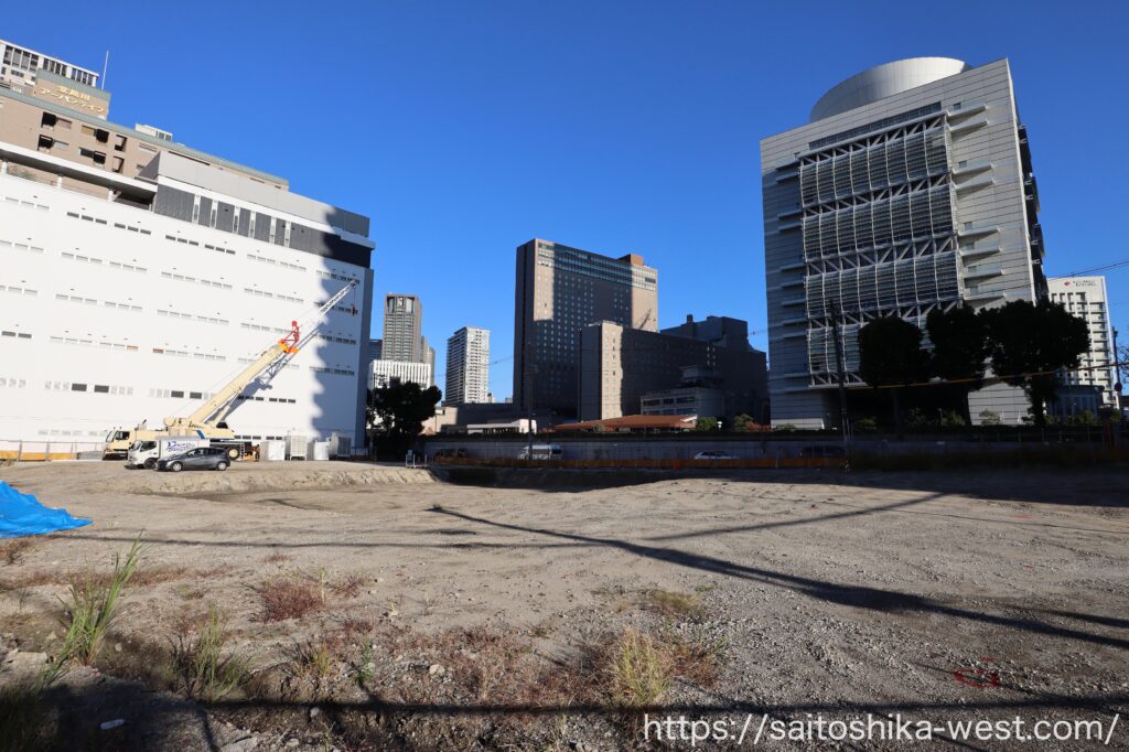 北東側から見た様子です。中之島西部は、なにわ筋線の開業を見越して、これからも再開発が活発化しそうです。