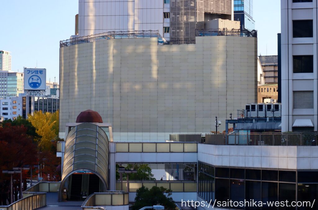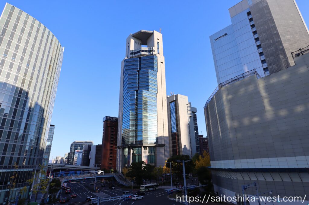 南側から見た様子です。隣接する御堂筋フロントタワー(写真奥の高層ビル)
