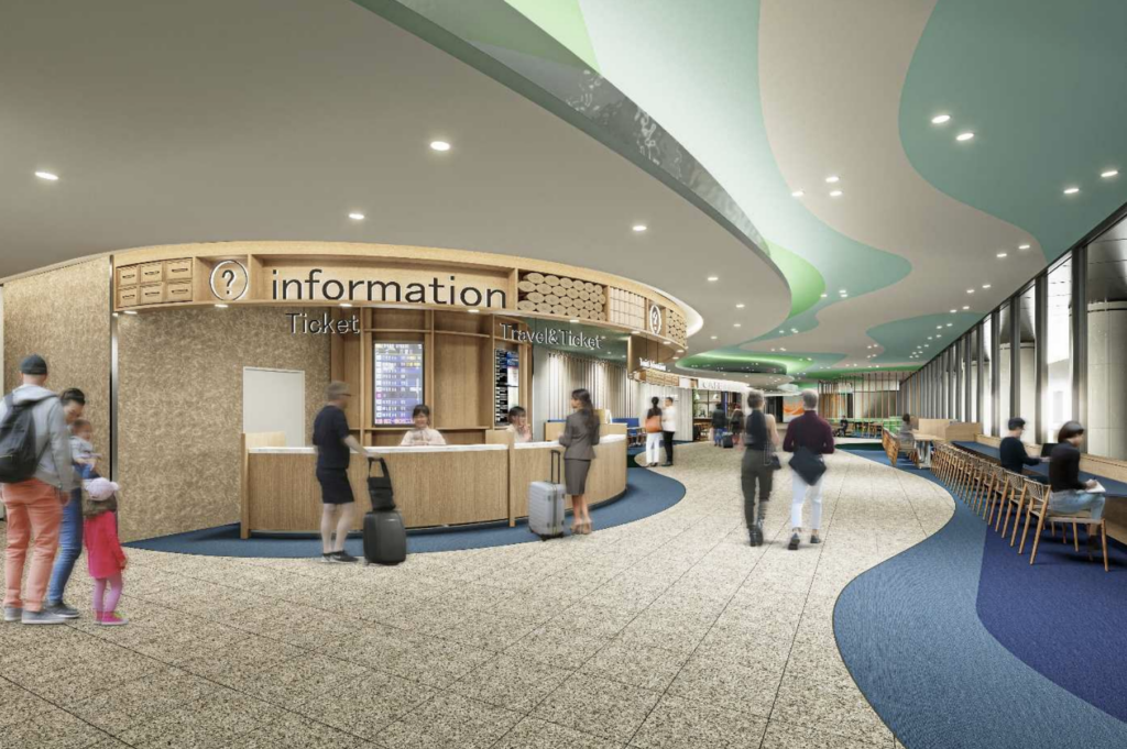 国際線保安検査場は中央吹抜け部への移設・拡張により、今後の国際線需要増に対応可能となります。さらに、国内線と国際線に分かれていた到着ロビーは一体化され、人の流れがスムーズに連結。二次交通への乗り継ぎが容易になるとともに、総合案内所の新設により観光情報の発信も強化されます。
