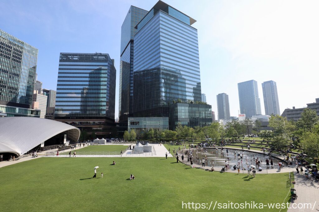 てんしばの成功は、大阪の都市開発全体に広がっています。梅田エリアの大規模再開発「グラングリーン大阪」では、超高層ビル群と並んで大規模な「うめきた公園」が整備されました。さらに、2025年春に開業した「なノにわ」でも、芝生広場や市民が自由に使える空間が中心に据えられています。