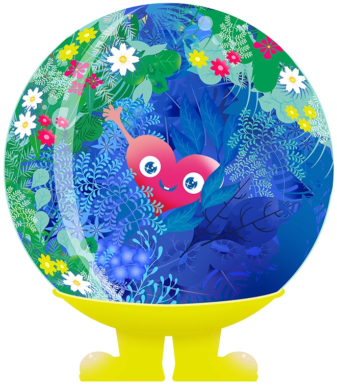横浜花博の公式マスコットは、「トゥンクトゥンク」。人と自然の鼓動=「共鳴」をモチーフにし、穏やかで有機的なフォルムが特徴です。その名の通り、“トゥンクトゥンク”と響き合う心がテーマです。
