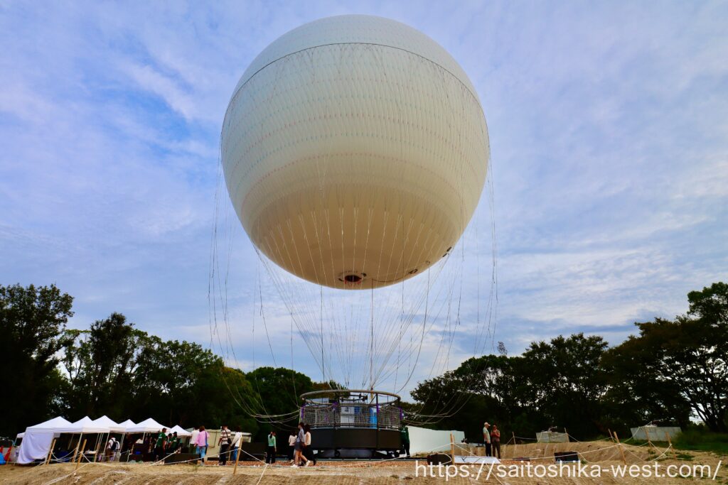 気球の大きさはこんな感じです。ヘリウムガスが充填されていますが、風船の様な感じではなく、かなりカッチリした印象です。