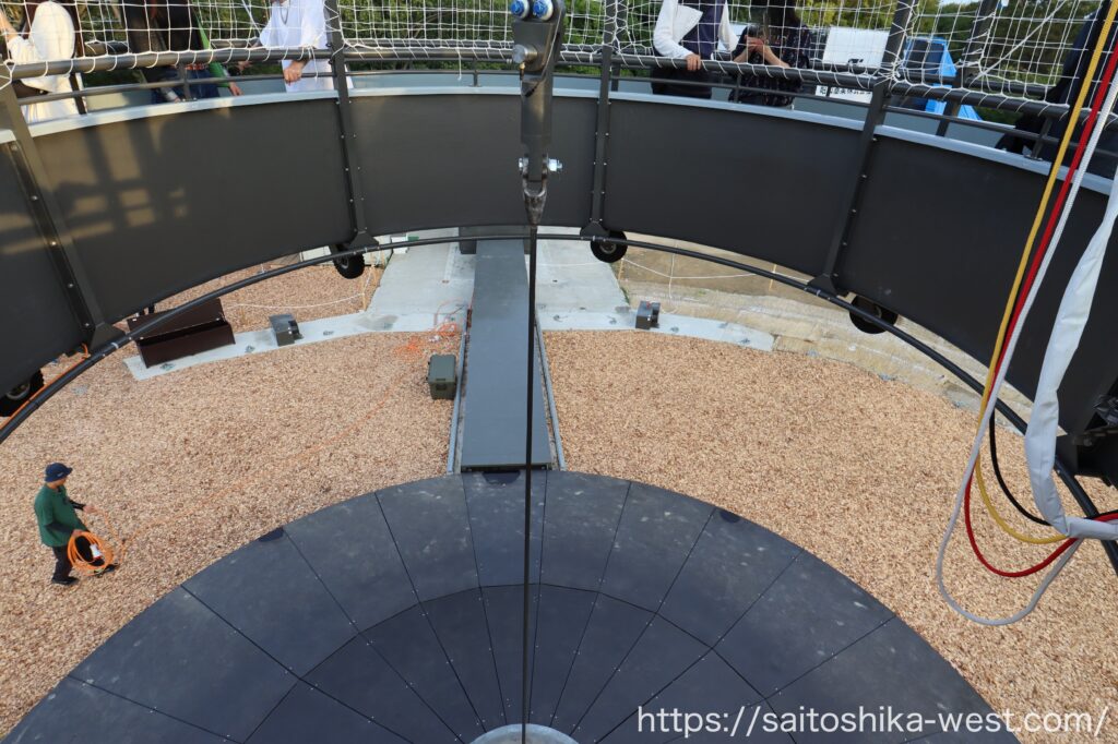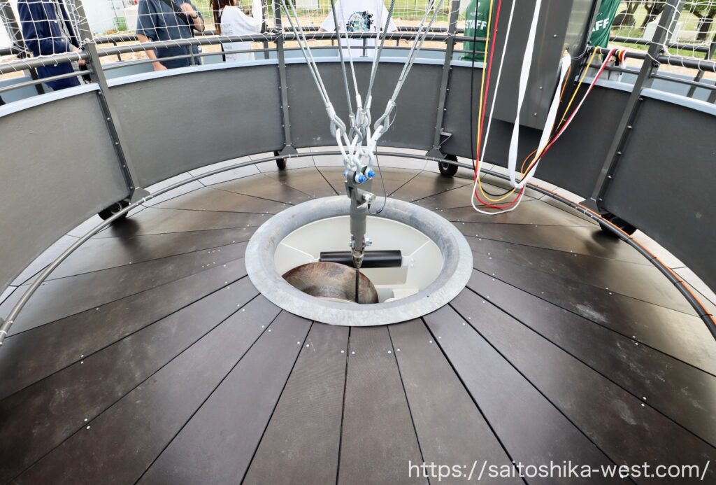 気球の着陸スペースの様子です。逆すり鉢状の形をしており、ゴンドラがちょうど収まるように設計されています。