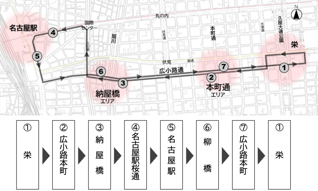 名古屋市は、名駅・栄・大須など都心の主要エリアをつなぎ、回遊性を高めてにぎわいを創出することを目的に導入します。