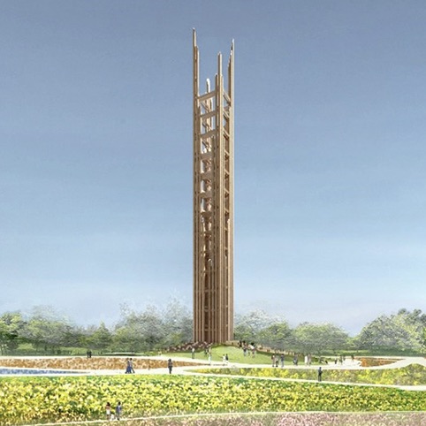 鹿島建設は同博覧会において、木造タワー「KAJIMA TREE(カジマツリー・仮称)」を建設する計画を発表しました。大屋根リングに使われた木材を再利用し、持続可能な都市づくりを象徴するモニュメントとするものです。