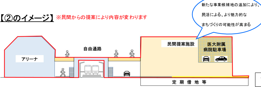 民間提案施設・新アリーナ・新駅を「自由通路」で一体化