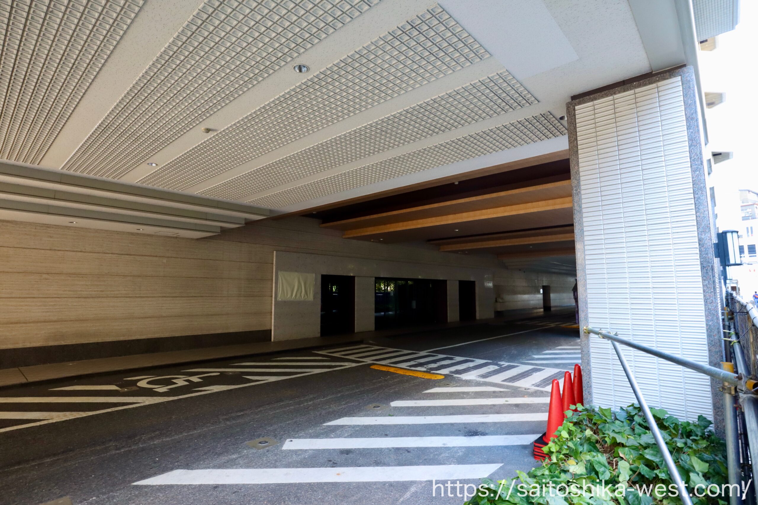 ホテルのエントラス付近の様子です。証明が落とされ、薄暗くなっています。