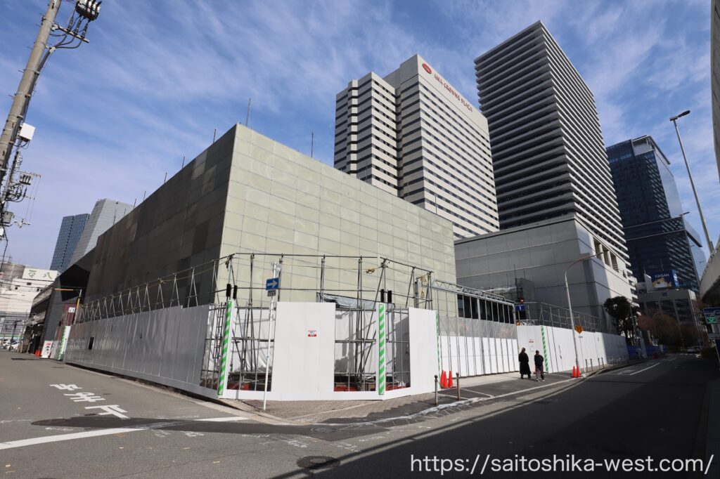 南西側から見た様子です。ANAクラウンプラザホテルとクラブ関西の敷地を合わせると、かなり広いですね……。大規模な再開発が予想されるため、期待が膨らみます。