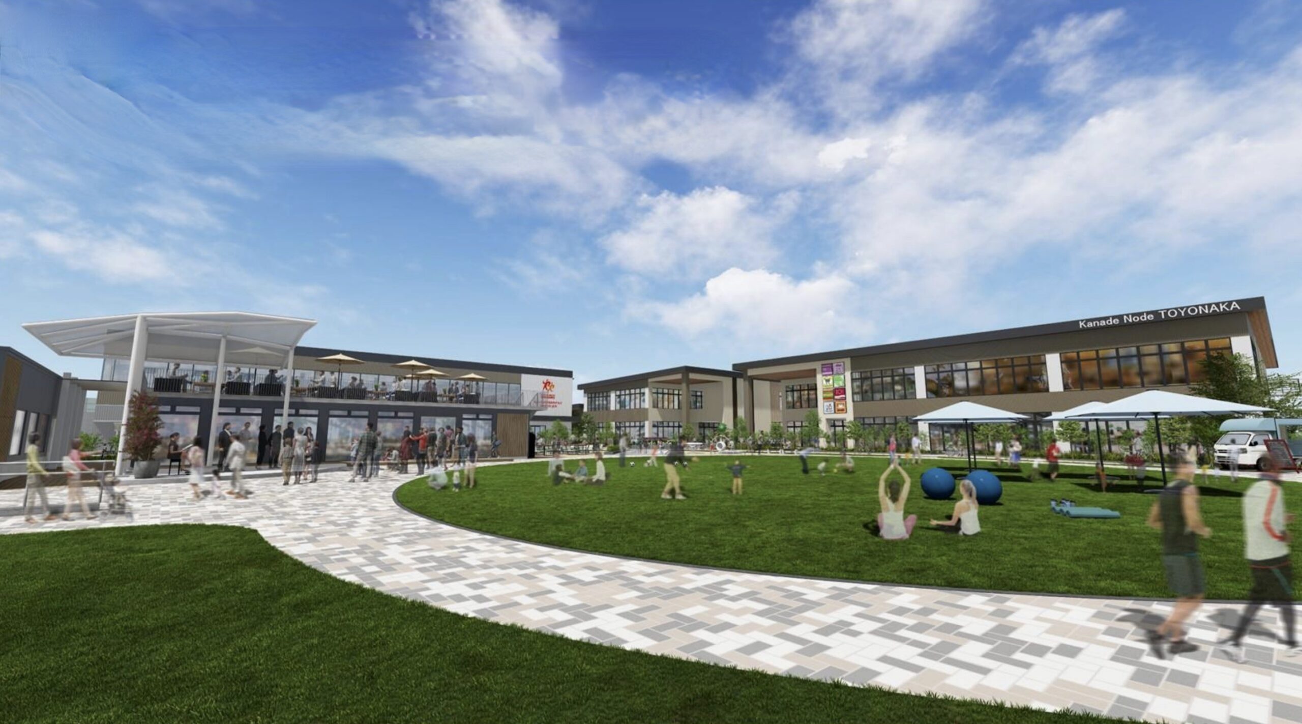 芝生広場は野田中央公園と連続させ、日常の憩いからイベント利用まで幅広い活用を想定しています。