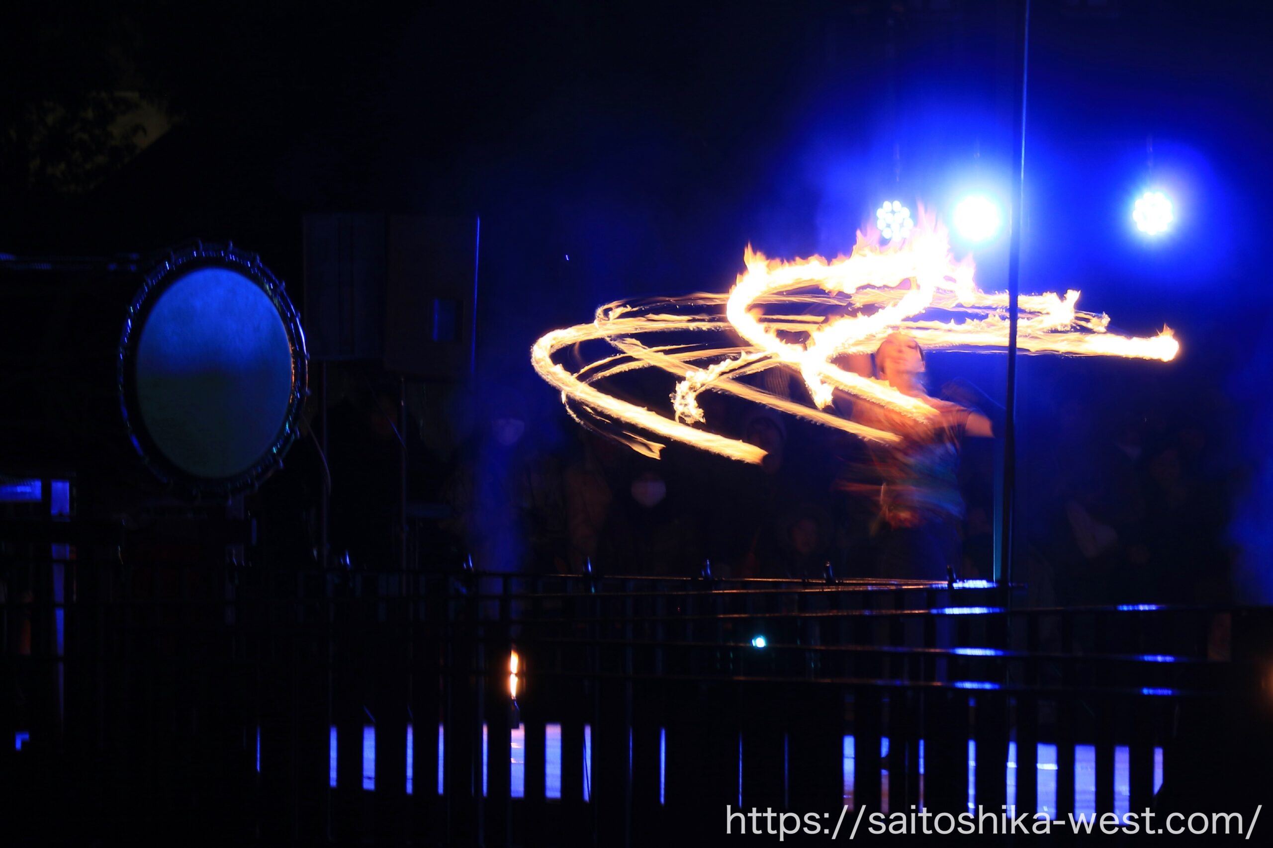京都駅前の専用劇場とは別に、全国の商業施設でも、クリスマスシーズンを中心に和太鼓演奏と光・音響を組み合わせたイベントが増えています。