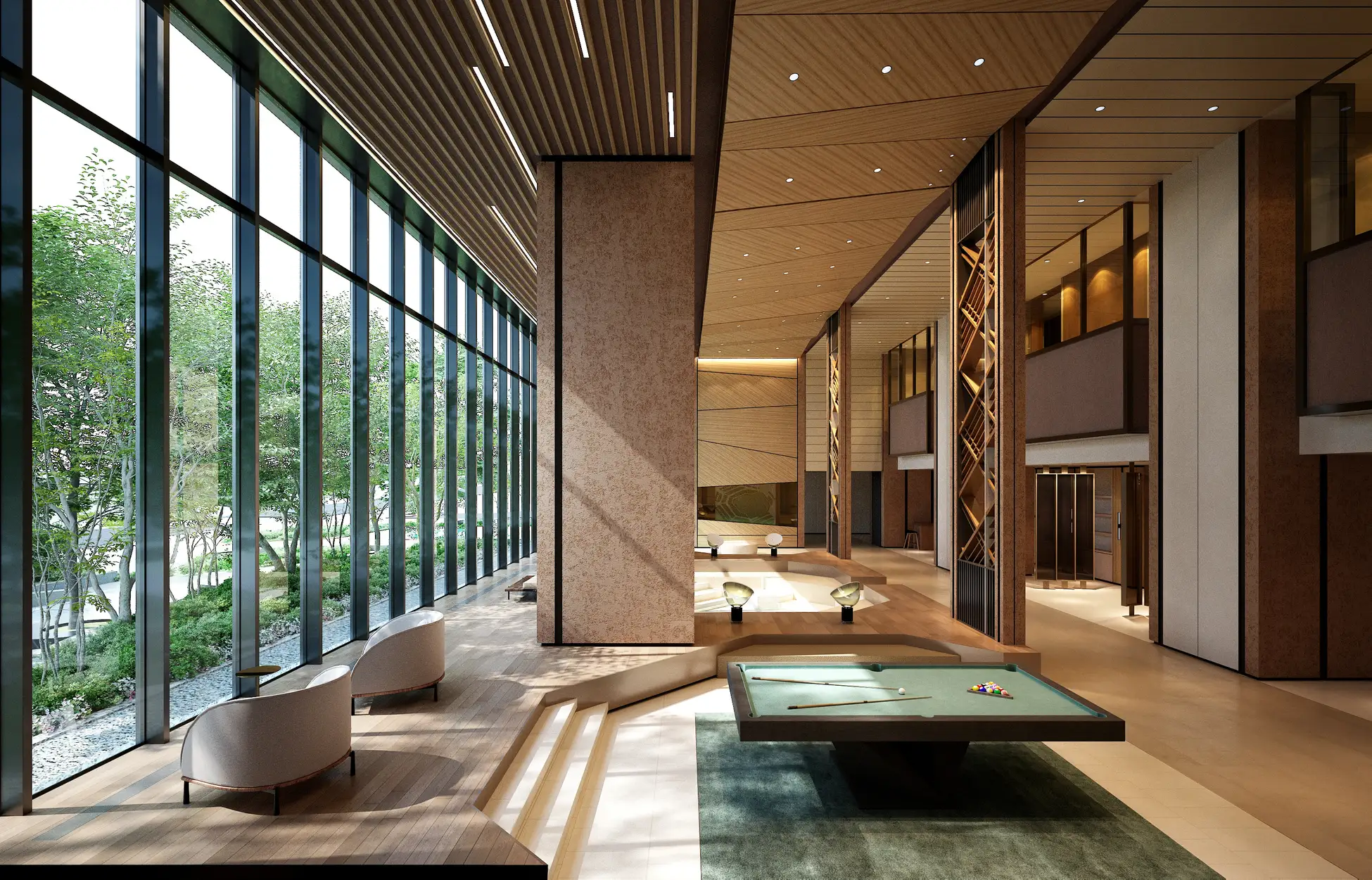 共用部には、サウナ付きスパ、会議室、パーティールームなどを整備する予定です。球場が見えるパーティールームも計画されており、観戦やイベント時の利用を想定した空間づくりが進められています。