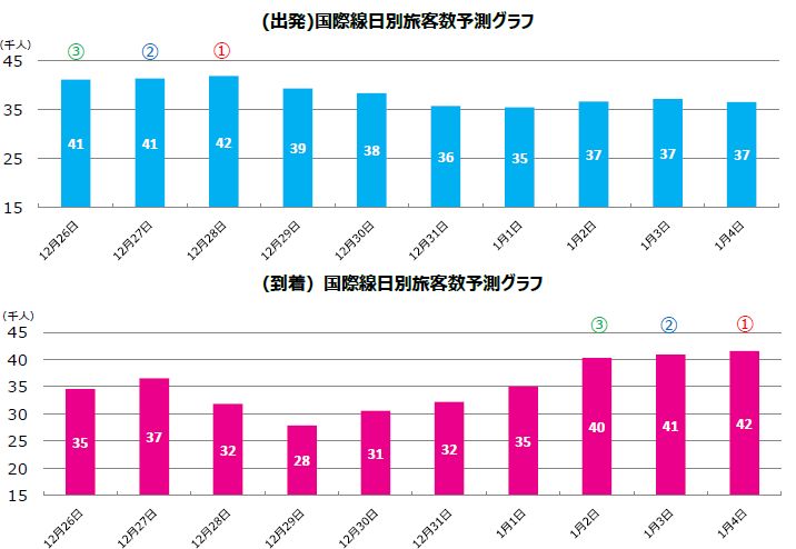 年末に海外へ出国し、年始に帰国するという、年末年始特有の人の流れが今年も明確に表れています。
