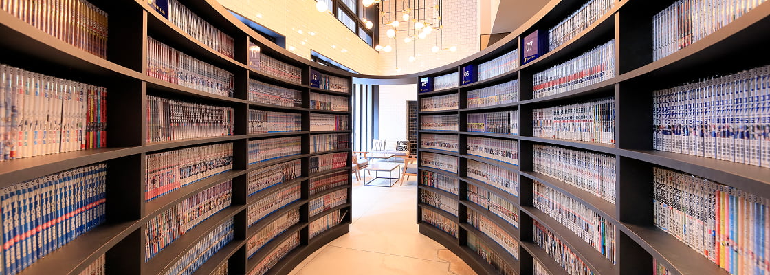 ホテルロビーには約1万冊のMANGA(漫画)が設置されます。このコンセプトは単なる装飾ではなく、運営面を考慮した差別化手法と整理できます。