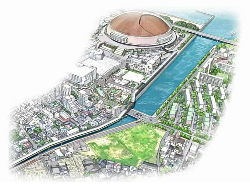 ルートは、駅とドームを結ぶように流れる菰川の上空を想定し、高架構造とする案が示されています。要望書では、河川上などの公共空間の占用許可や、国の支援制度の活用について、市の協力を求めています。