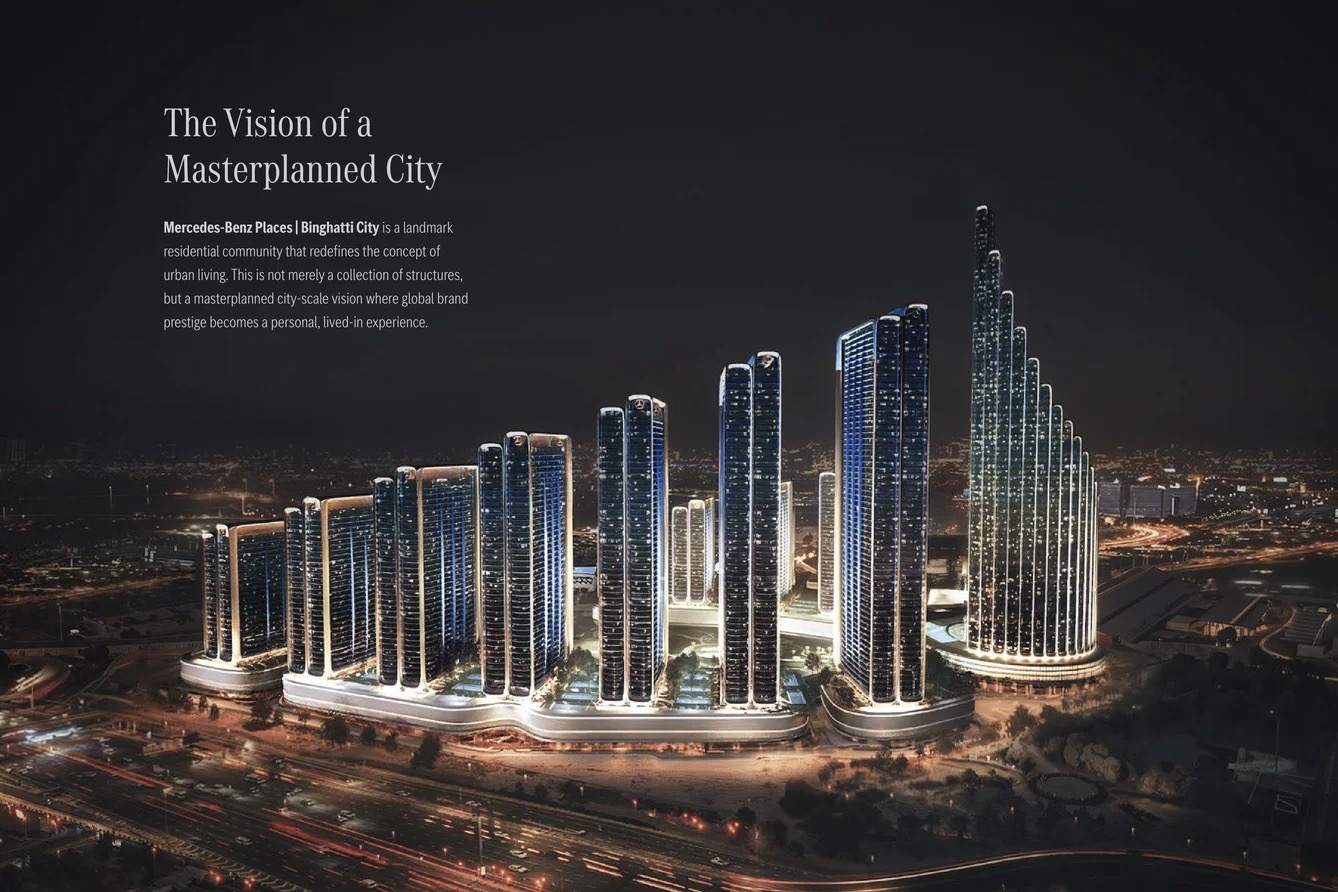 Mercedes-Benz Places | Binghatti City は、立地や建物仕様といった実体評価を超え、都市・ブランド・金融を一体で設計し、「語れる唯一性」を価値の中核に据えた都市開発です。