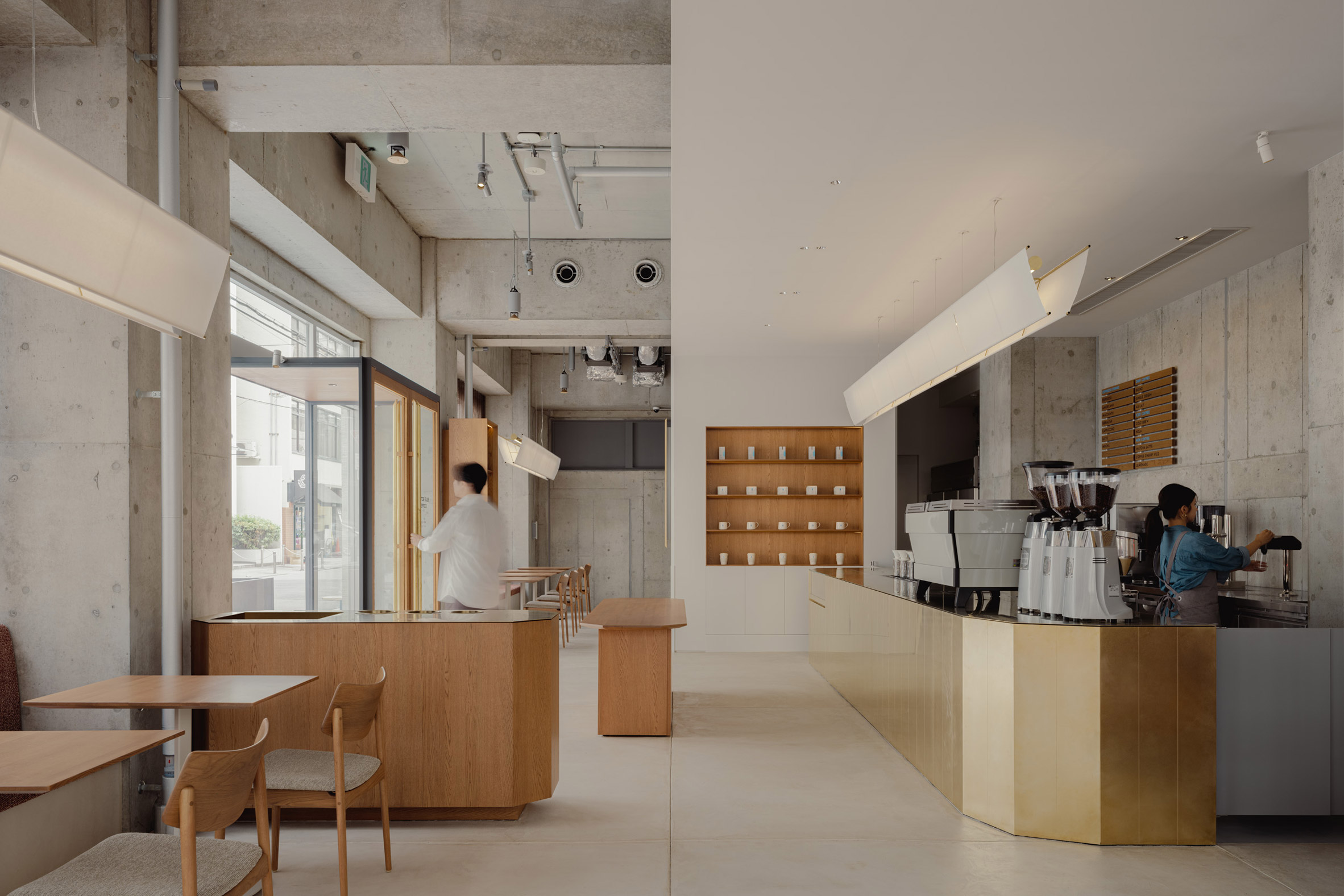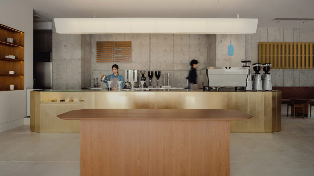 空間デザインを担当したのは、みなとみらいカフェや白井屋カフェなど、ブルーボトルコーヒーの複数店舗を手がけてきた 芦沢啓治建築設計事務所 です。心斎橋という高密度な都市環境において、意匠の主張を前面に出すのではなく、構成と素材のバランスによって落ち着きのある空間を成立させています。