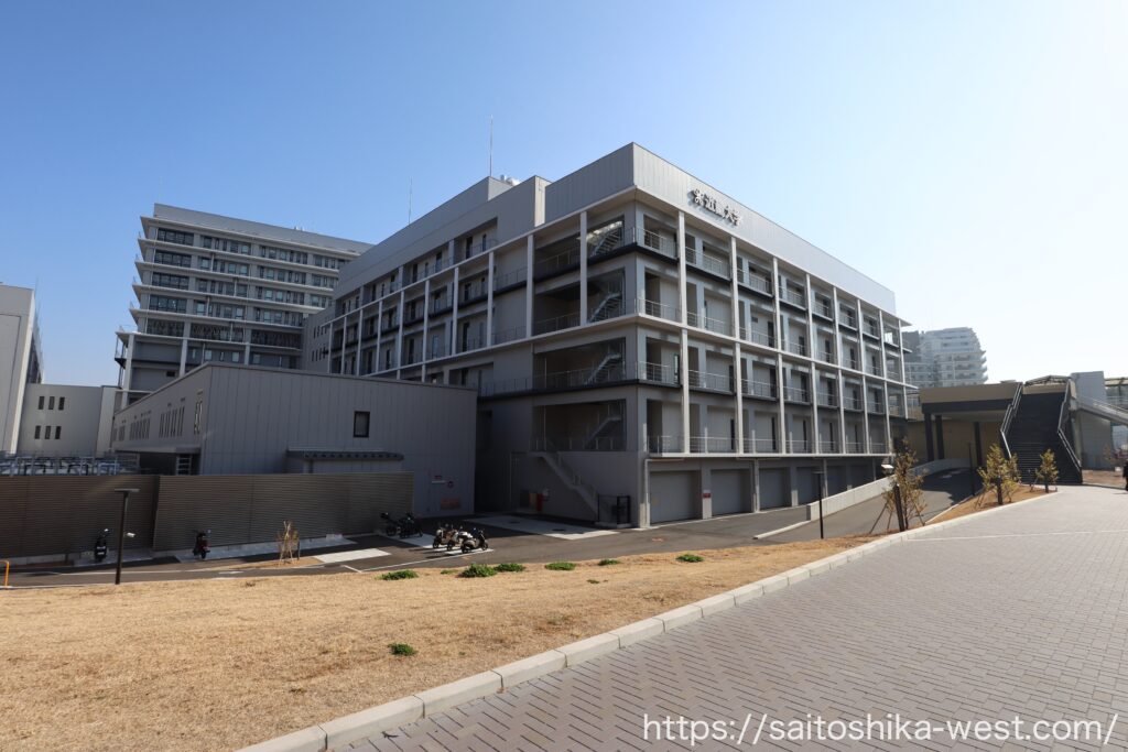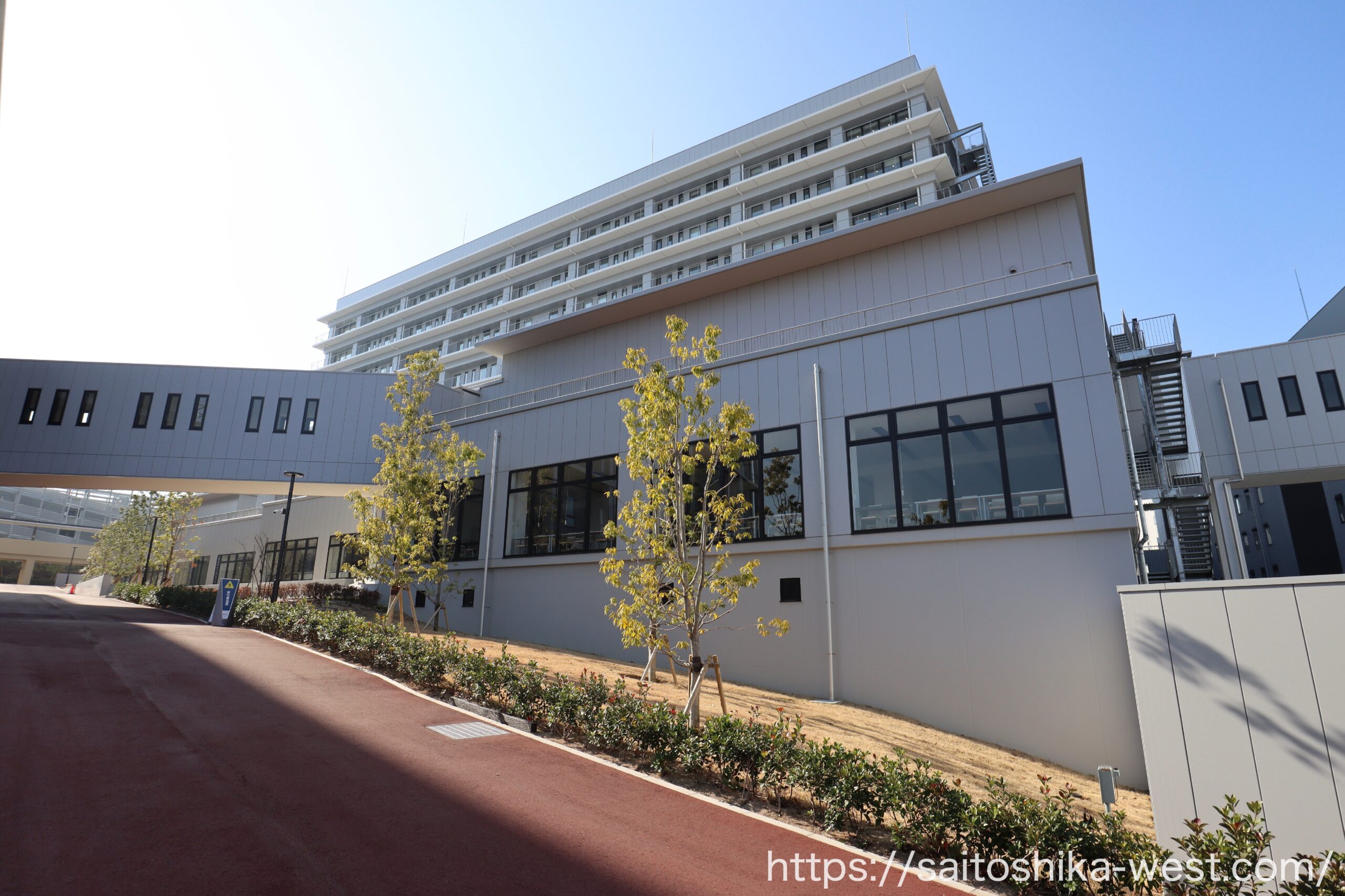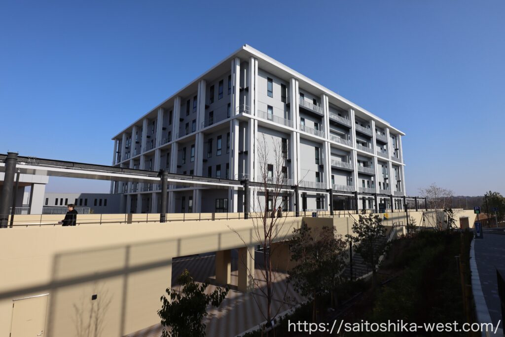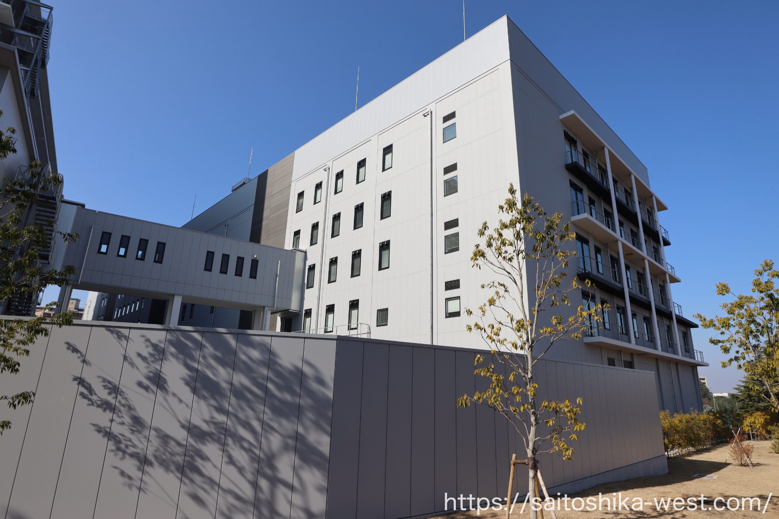 南西側から見た様子です。「新キャンパス」と呼ぶにふさわしい規模の大きな施設です。